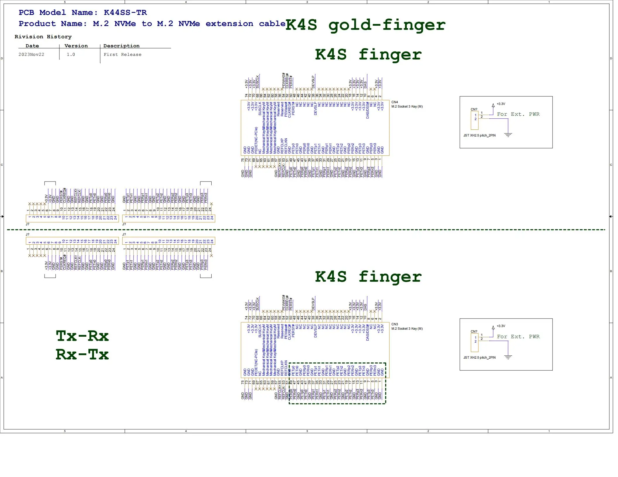 El modelo K44SS-TR señal diferencial tiene intercambio, señal diferencial PCIe Tx a Rx, Rx a Tx, dos de la misma conexión de servidor deben elegir este modelo de intercambio TX-RX, adecuado para el uso de Master-Slave.