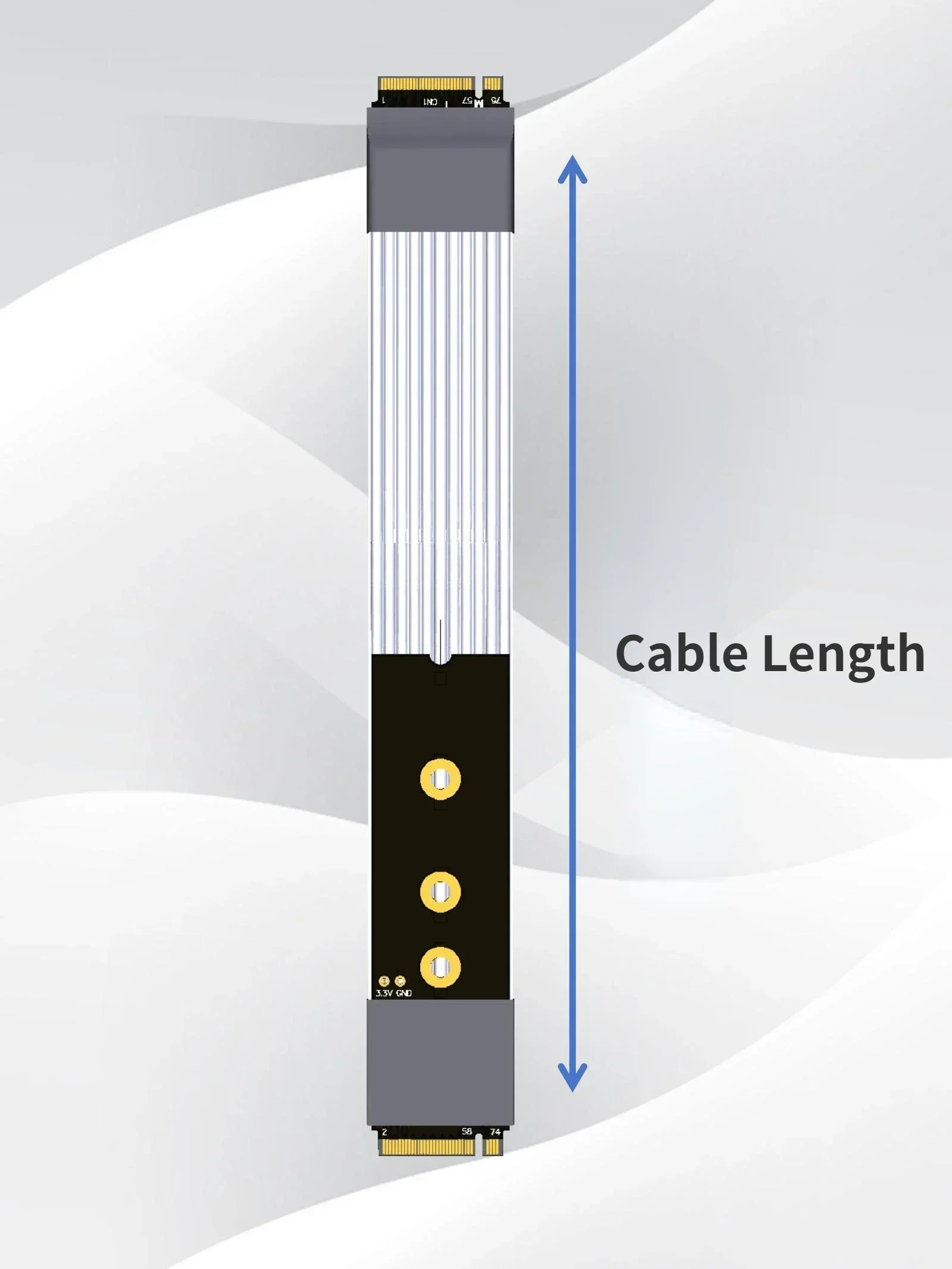 2.Ventaja de la longitud de la línea, se puede aceptar de 15 cm a 1 m personalizado, la tienda vende cable de conversión, la impedancia del cable es baja, la longitud de la línea dentro de 60 cm admite PCIe4.0 a máxima velocidad.