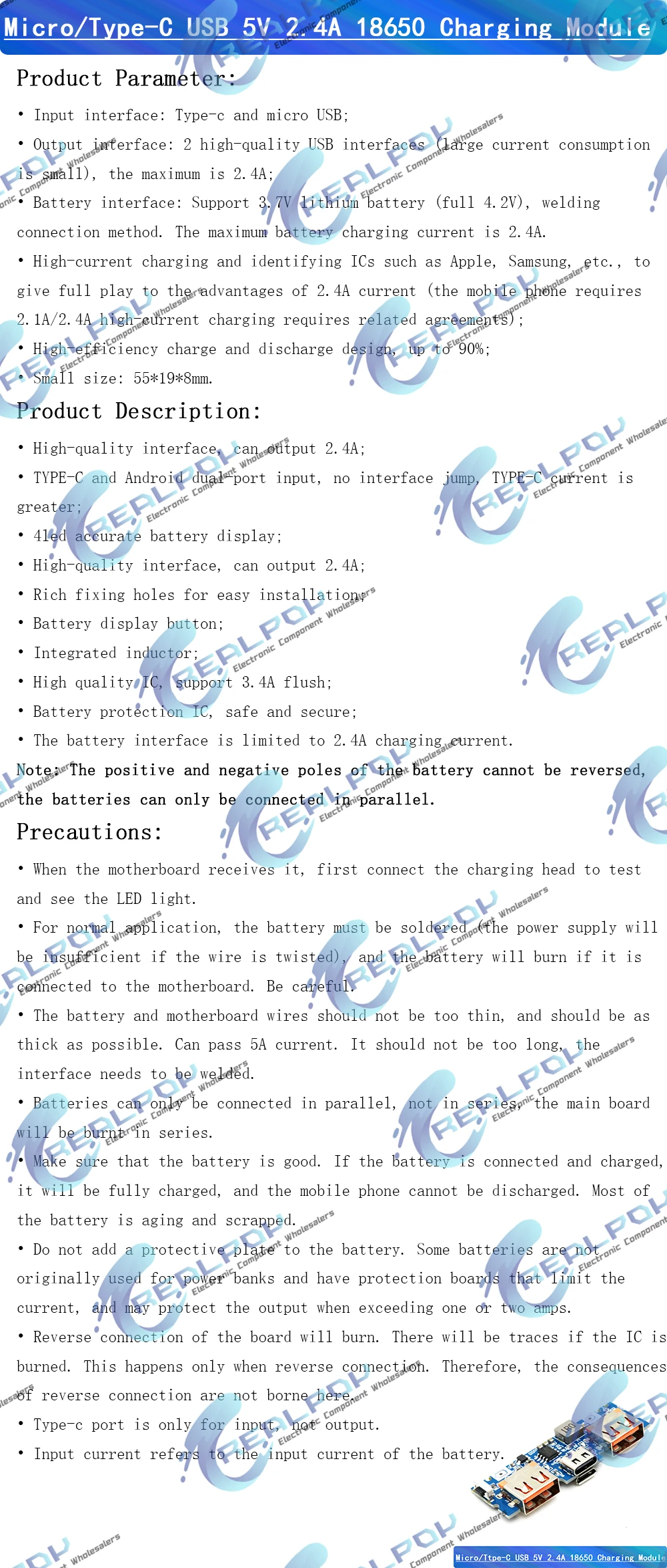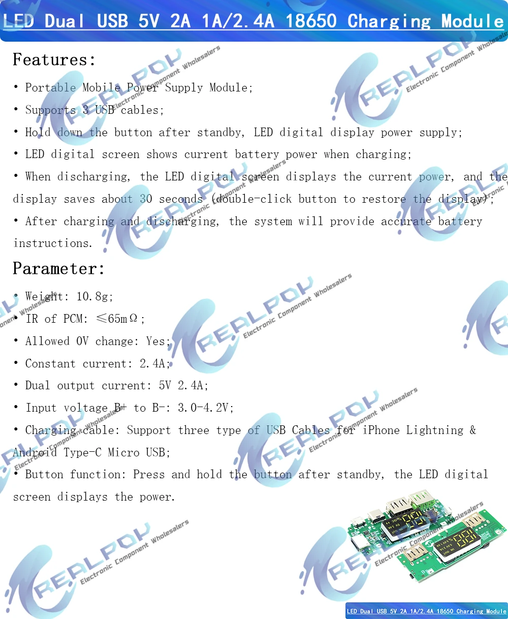 Placa de cargador de batería de litio LED USB Dual 5V 2.4A Micro/tipo-c USB banco de energía móvil 18650 módulo de carga protección de circuito