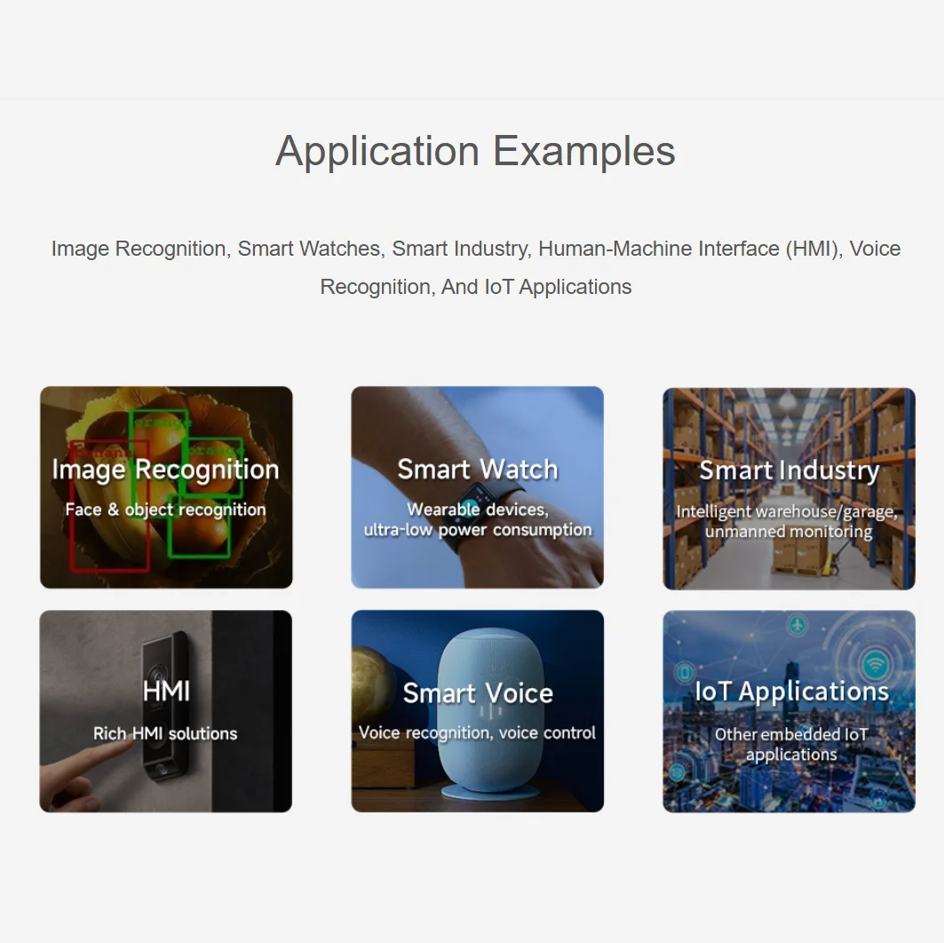 Reconocimiento de imágenes, relojes inteligentes, industria inteligente, interfaz hombre-máquina (HMI), reconocimiento de voz y aplicaciones de IoT