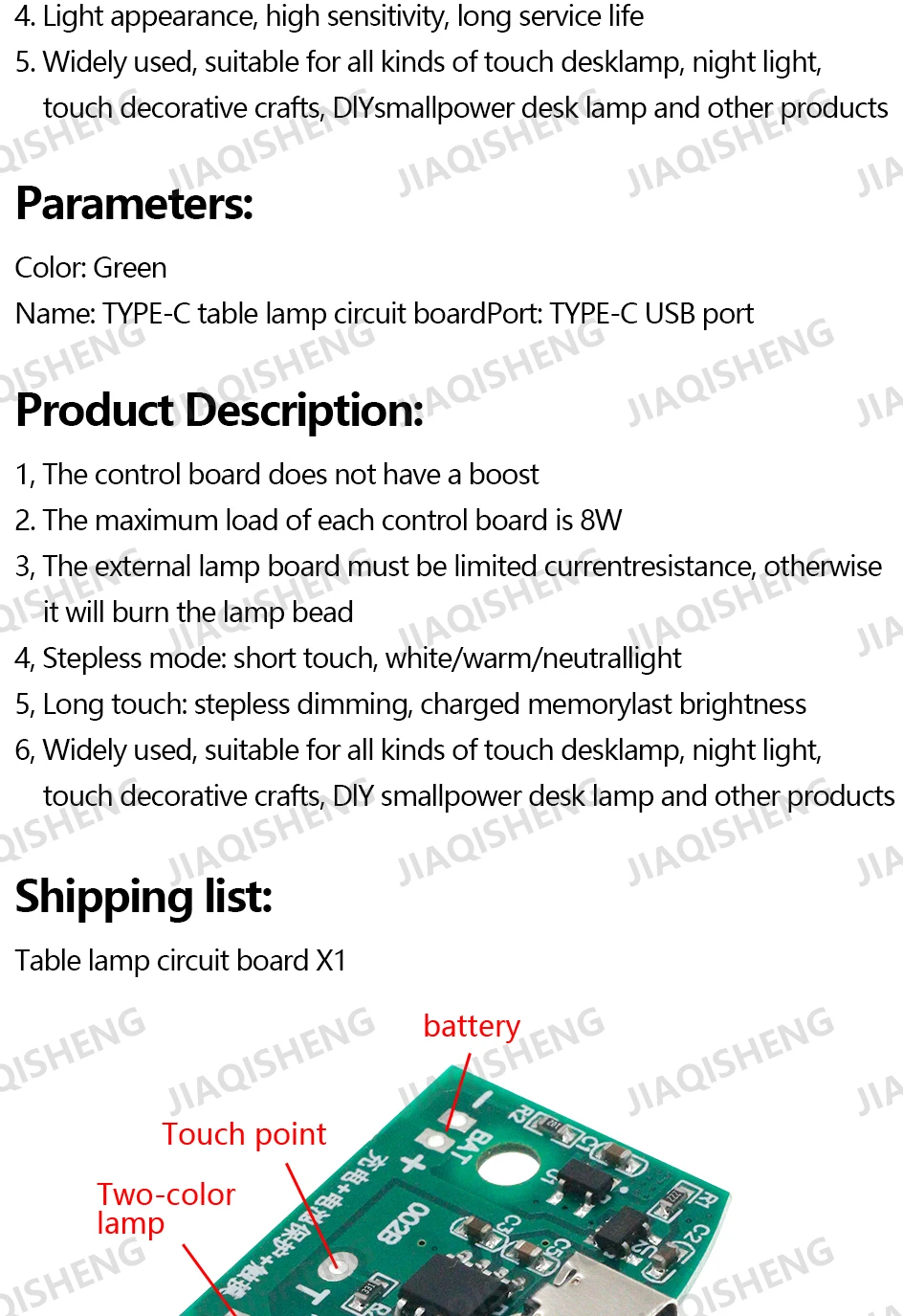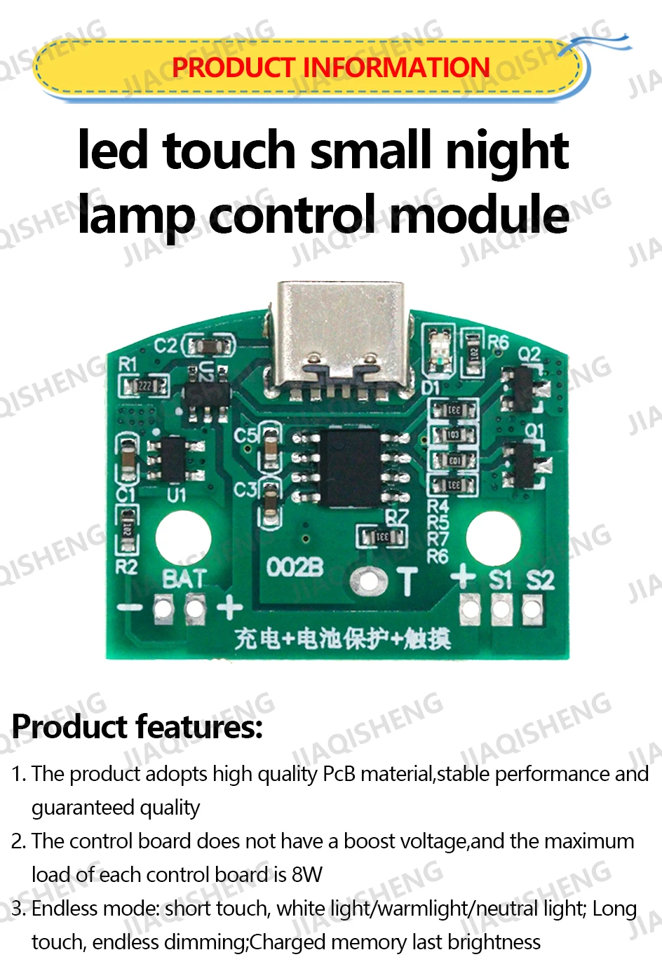Placa de circuito de lámpara de mesa tipo C, 8W, carga USB, tres engranajes, atenuación continua, Led táctil, módulo de Control de lámpara nocturna pequeña, 1/5/10 Uds.