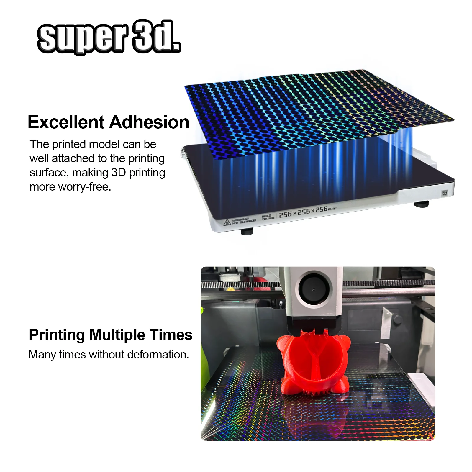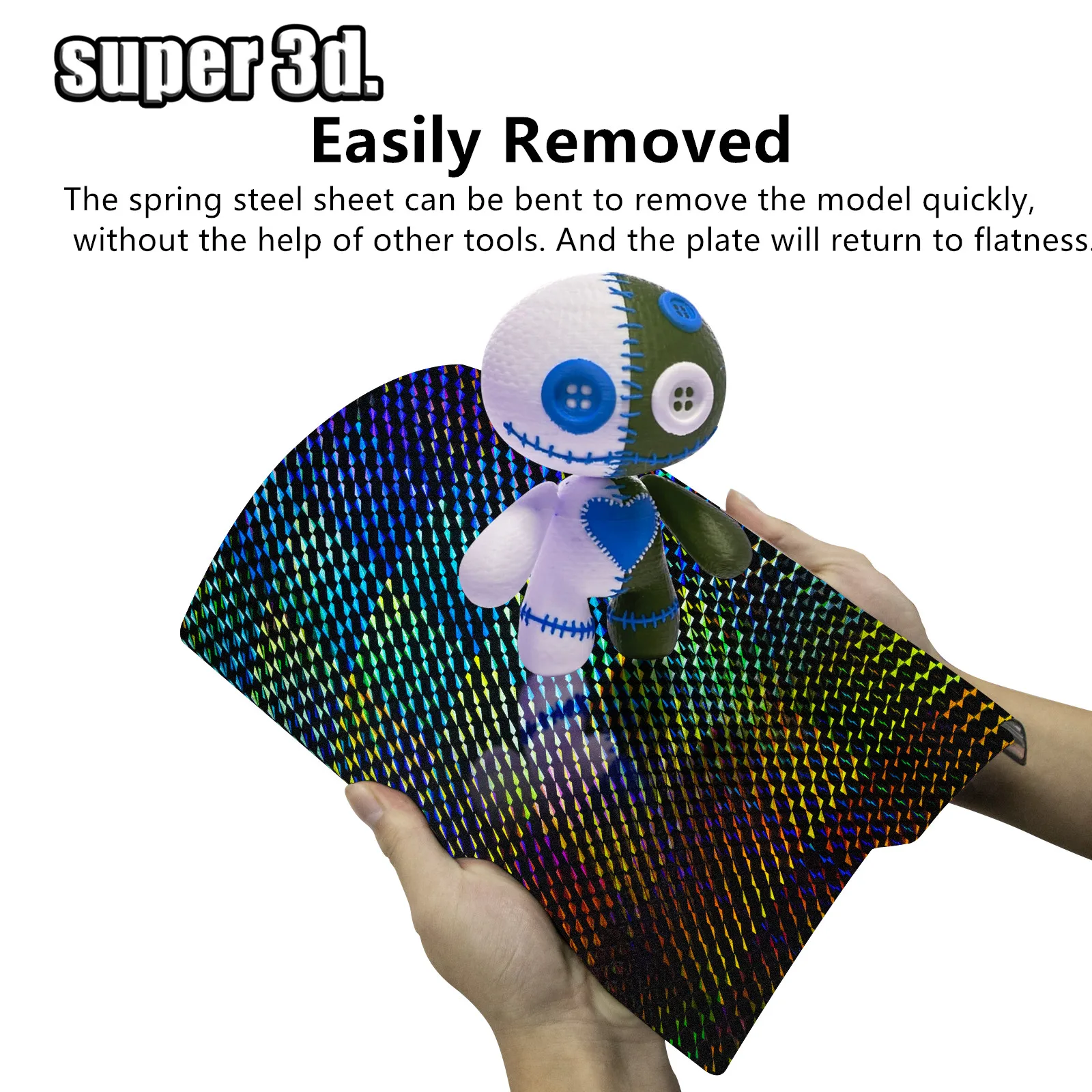 7.Fácil de instalar: la lámina de acero para resortes PEI-PEO es plana y flexible, viene sin lámina base magnética, pero podría ser atraída magnéticamente hacia el foco, porque la cama calentada de la impresora 3D Lab X1 es magnética, solo colóquela e imprima.