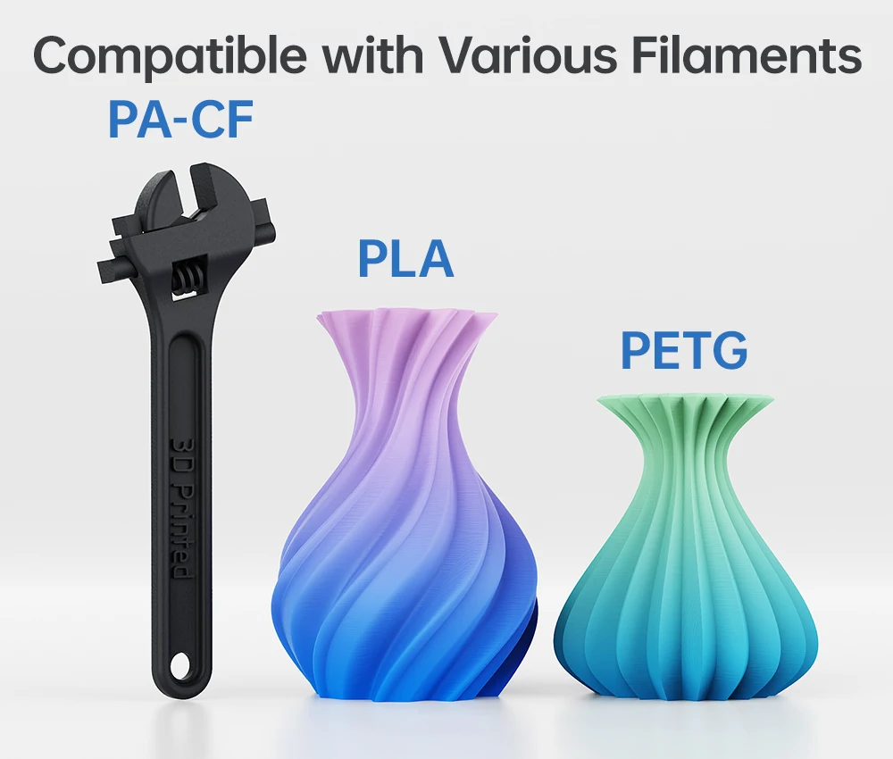 Imprima PLA, PETG, ABS, PA y otros materiales de ingeniería.