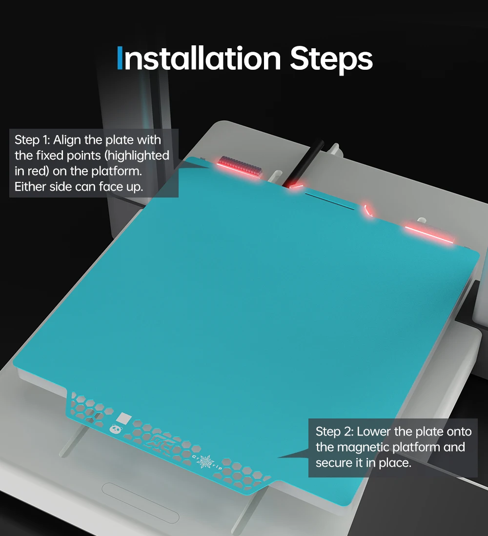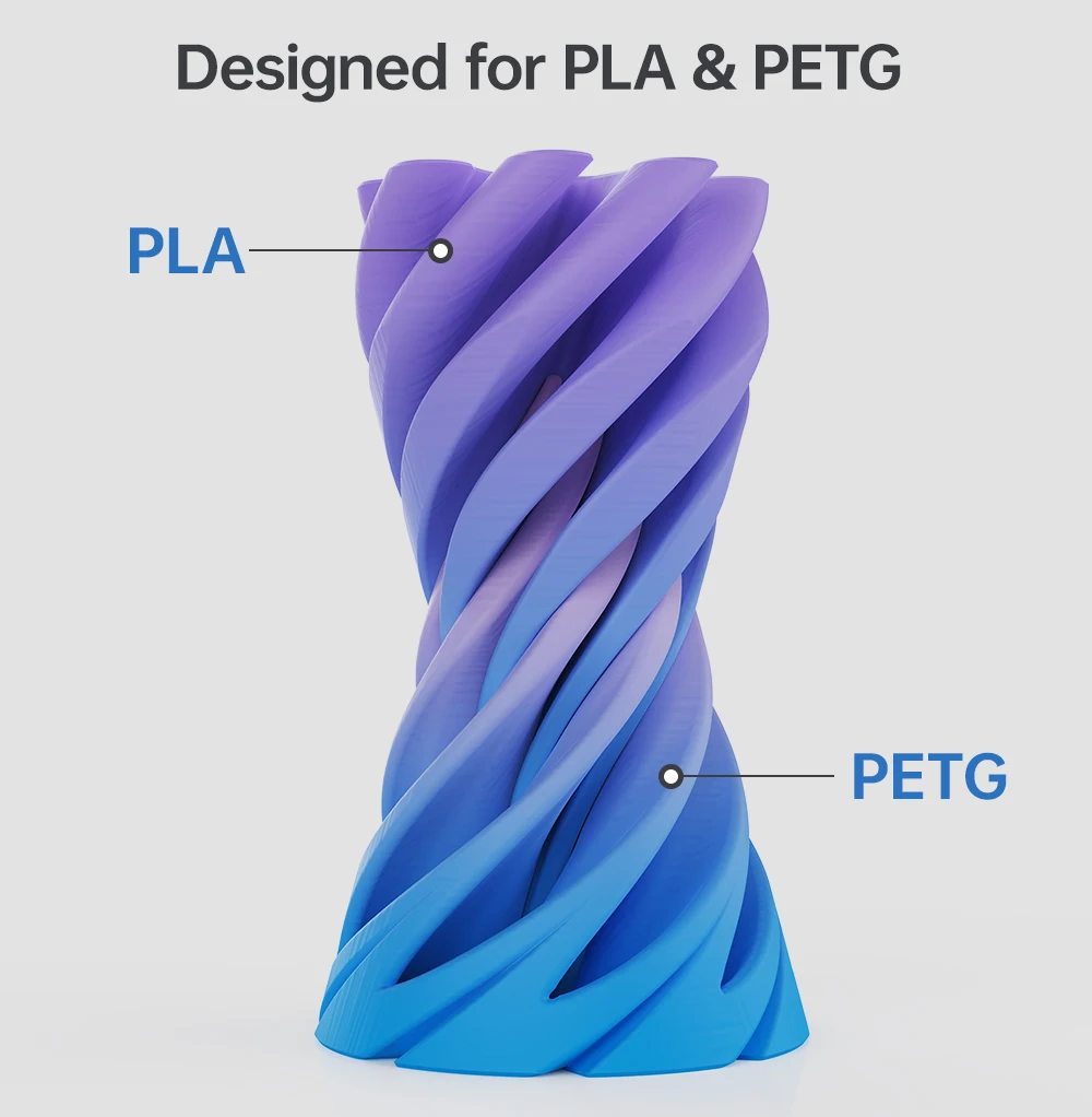 Compatibilidad del material de impresión en frío: Compatible solo con PLA y PETG, ofreciendo una adhesión de impresión en frío extremadamente buena. PLA 30-50°C, PETG 50-70°C