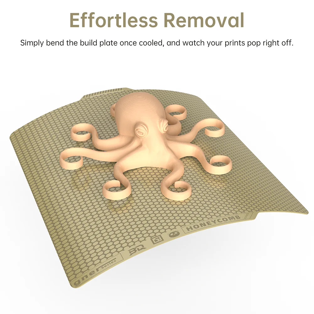 Simplemente doble ligeramente la superficie y su impresión terminada se desprenderá limpiamente sin necesidad de raspar o hacer palanca herramientas.
