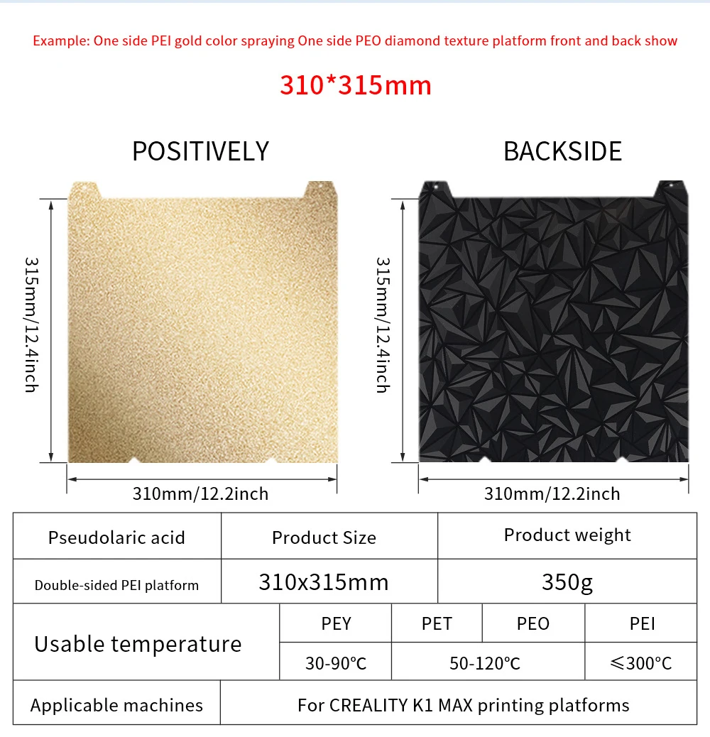 Color:Gold and Amber pei Size:310x315mm for K1 Max