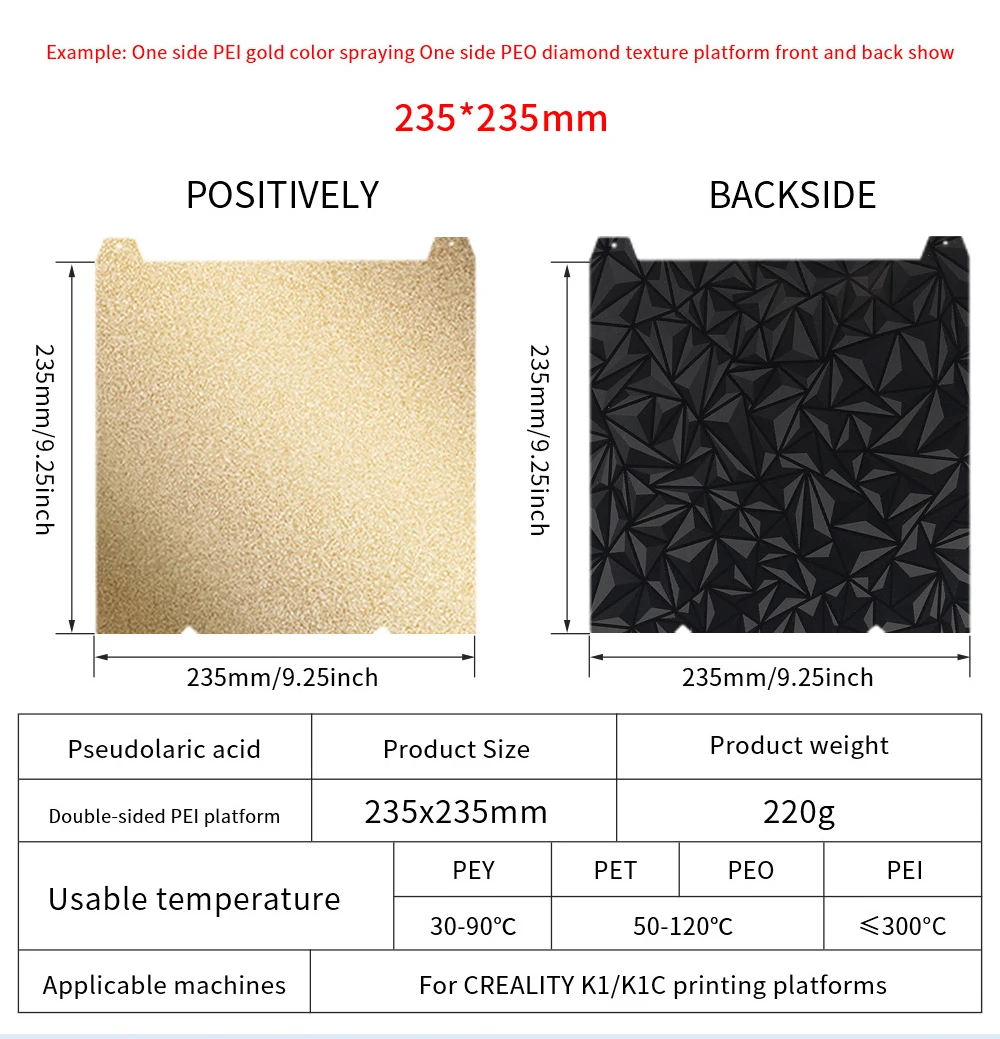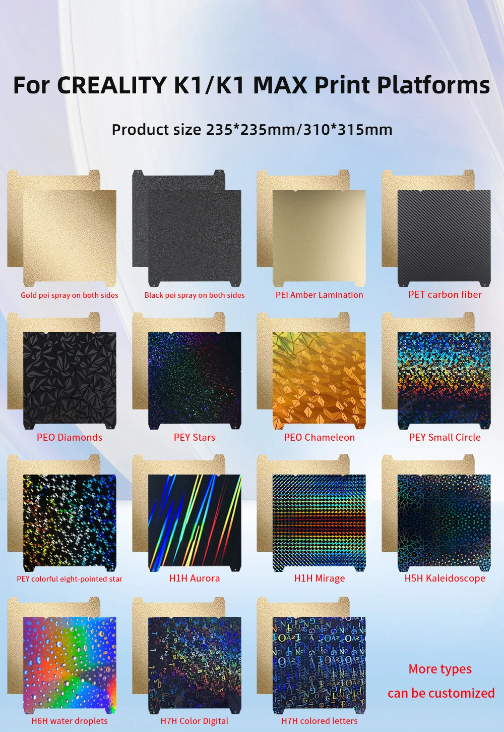 Placa de construcción para Creality K1 Max K1C, placa de construcción para cama Creality k1, PEO PET PEY PEI, 235x235, 310x315, Ender 3 S1 Ender 3 V3 Se