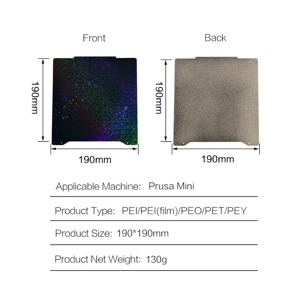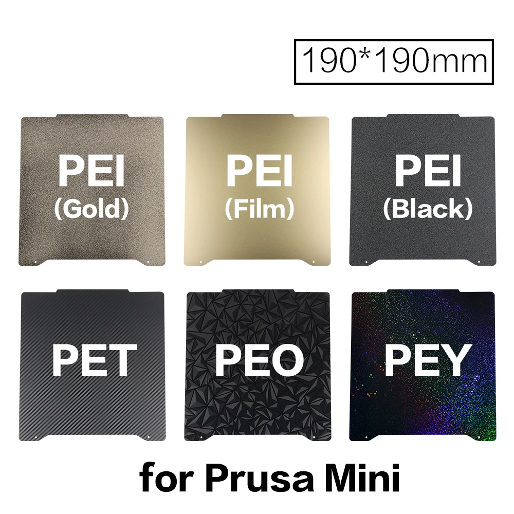 Comprar Placa de construcción para impresora 3D Prusa Mini, 190x190mm, textura de doble cara, hoja de acero suave PEO/PEY/PET PEI Spring, accesorios