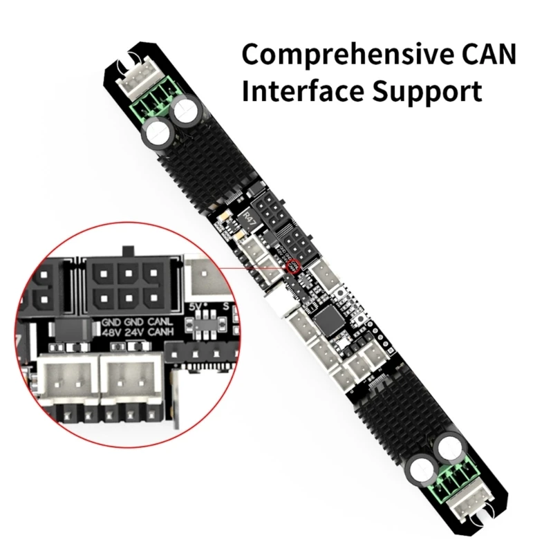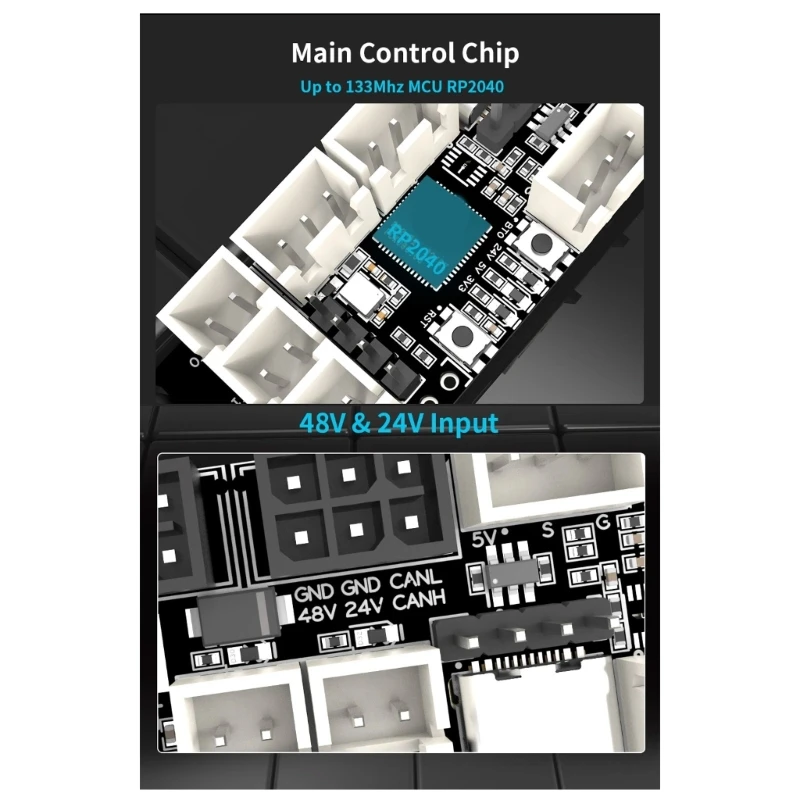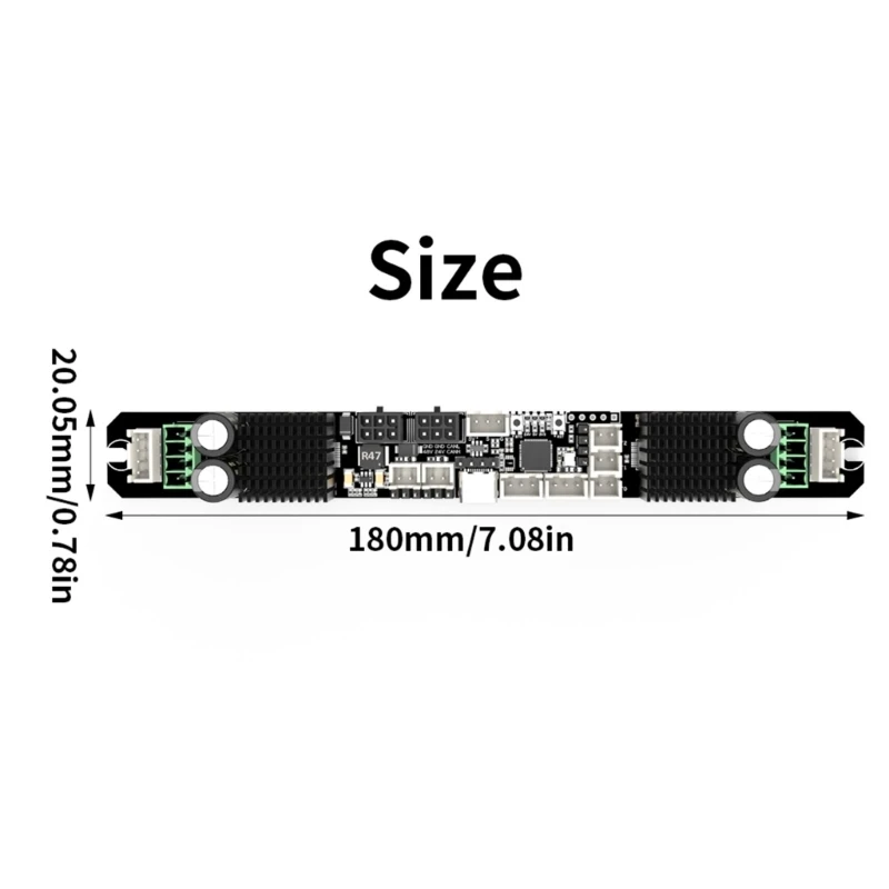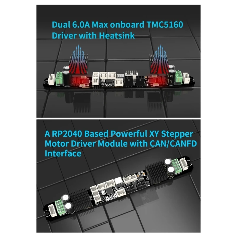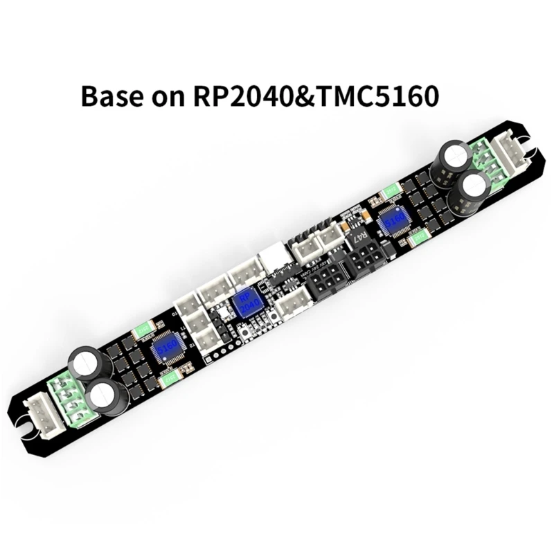 Equipada con doble controlador TMC5160 con disipadores térmicos, esta placa base admite una velocidad de procesamiento de hasta 133MHz