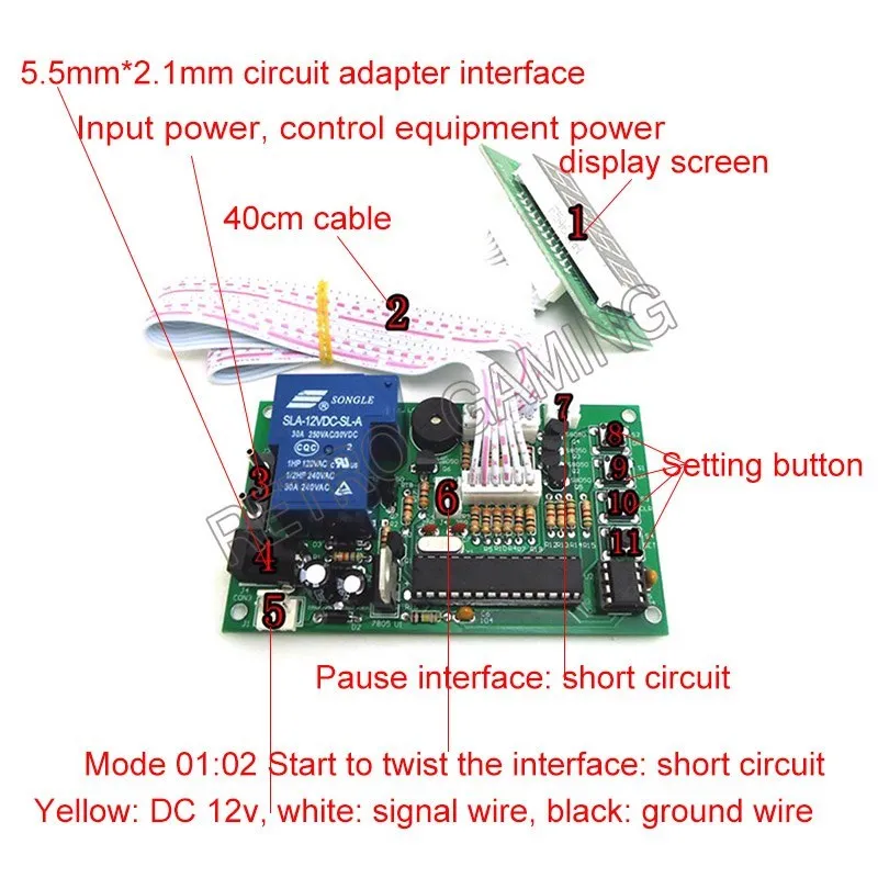 Placa de Control de temporizador JY 15B, fuente de alimentación, contador de retardo cero, controlador de circuito de sincronización con plomo blanco de 40cm para 6 tipos de aceptador de monedas