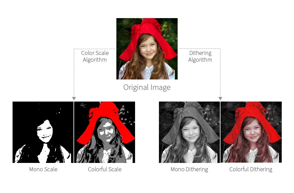 Floyd-Steinberg Soporte de pertenecienteMás combinaciones de colores, mejor reproducción de sombras, mejor efecto de visualización