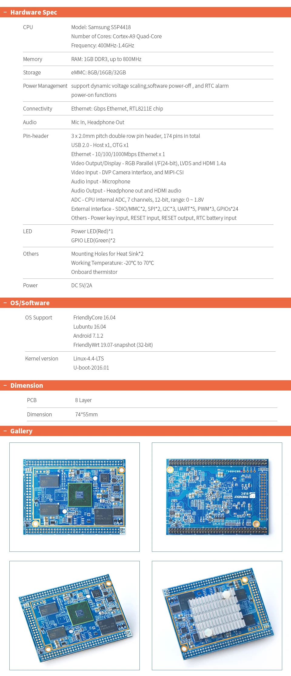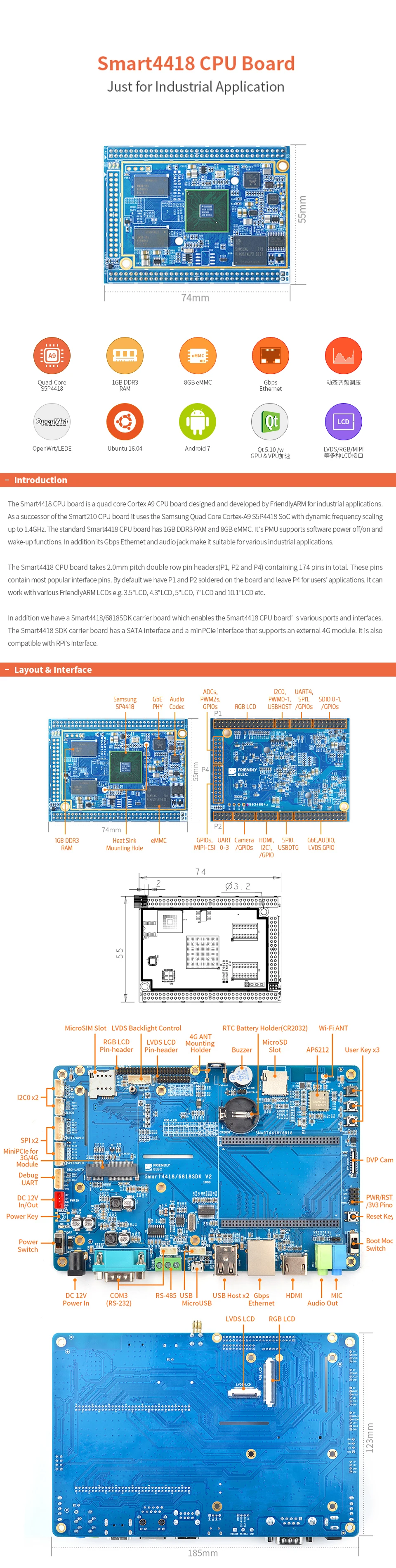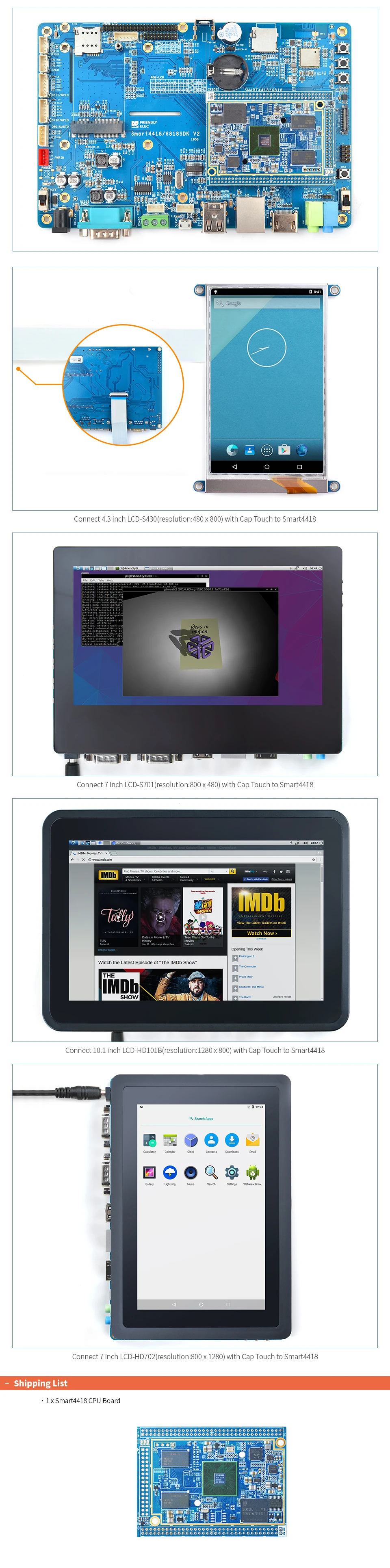 Comprar Placa de CPU Smart4418 S5P4418 Cortex-A9 1GB RAM + 8GB eMMC conector de Audio Ethernet Gbps integrado placa de CPU Smart4418 ubuntu