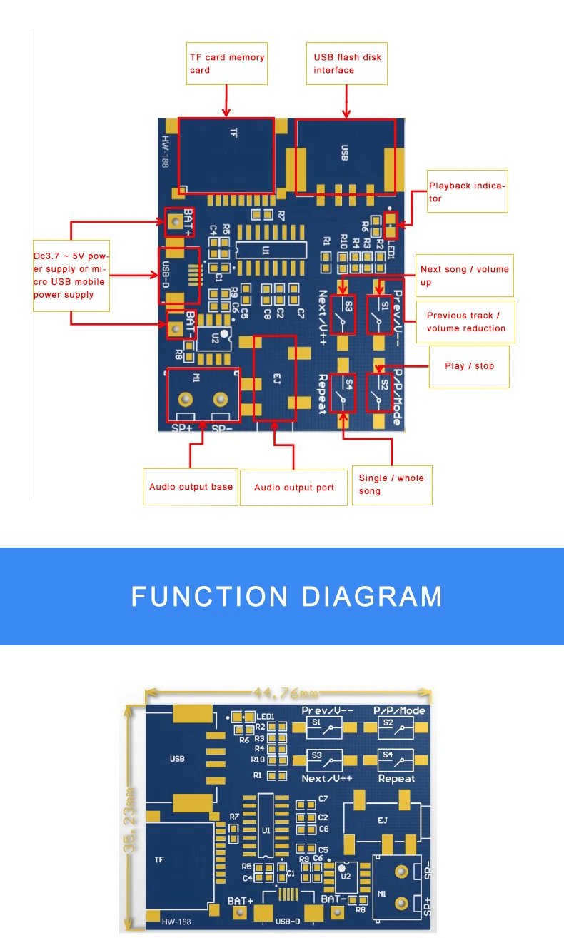 1.Voltaje de alimentación: 3,7-5 V