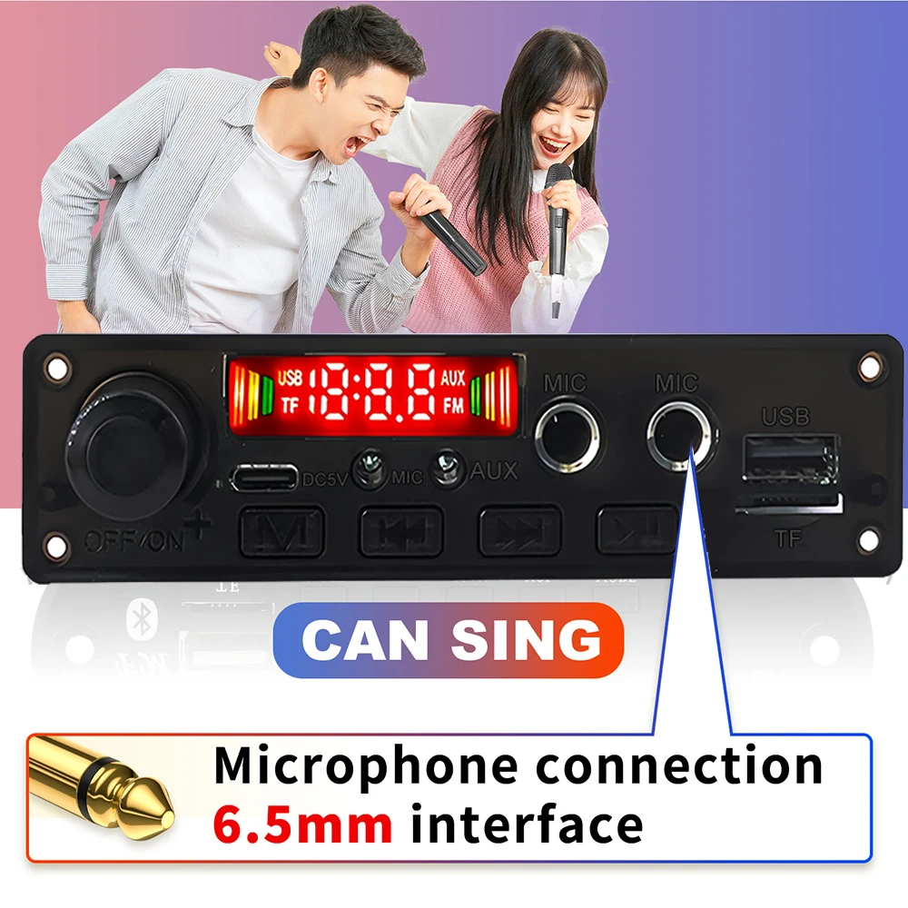 9.Potencia 10W, estéreo 2*5W.10.Admite entrada de micrófono dual de 6,5 mm y entrada de micrófono de 3,5 mm.11.El chip de radio independiente externo tiene un mejor efecto de radio.