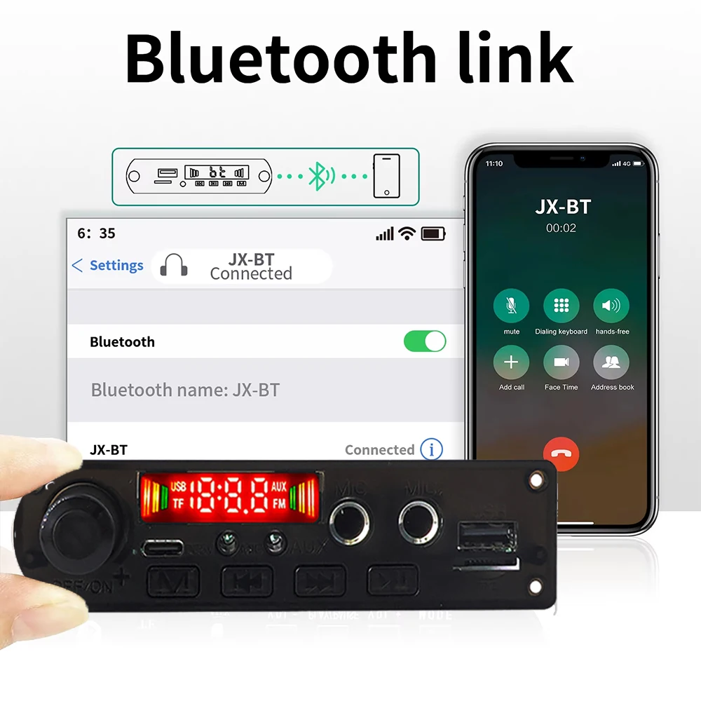 6.Se puede conectar directamente al altavoz, con amplificador de potencia de 2*5W.