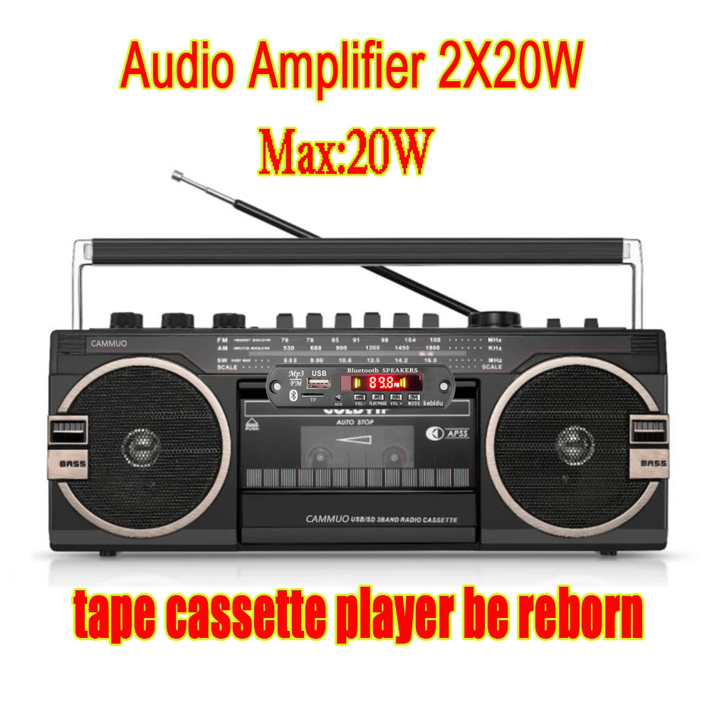 Feature: 1.support MP3 / WMA / WAV 2. support Bluetooth 5.0 3.Support call recording function 4. with digital tube display; 5.support MMC / SD / MMA and other cards, support USB interface (U disk); 6. power failure memory function 24C02; 7.support 5-10 meters distance infrared remote control operation; 8.support external audio input LINE IN (AUX); 9.support radio FM, receiving frequency band (87.5MHZ-108.0MHZ); 10.button: four-button multi-directional control, VOL- / AUTO / VOL + / MODE;