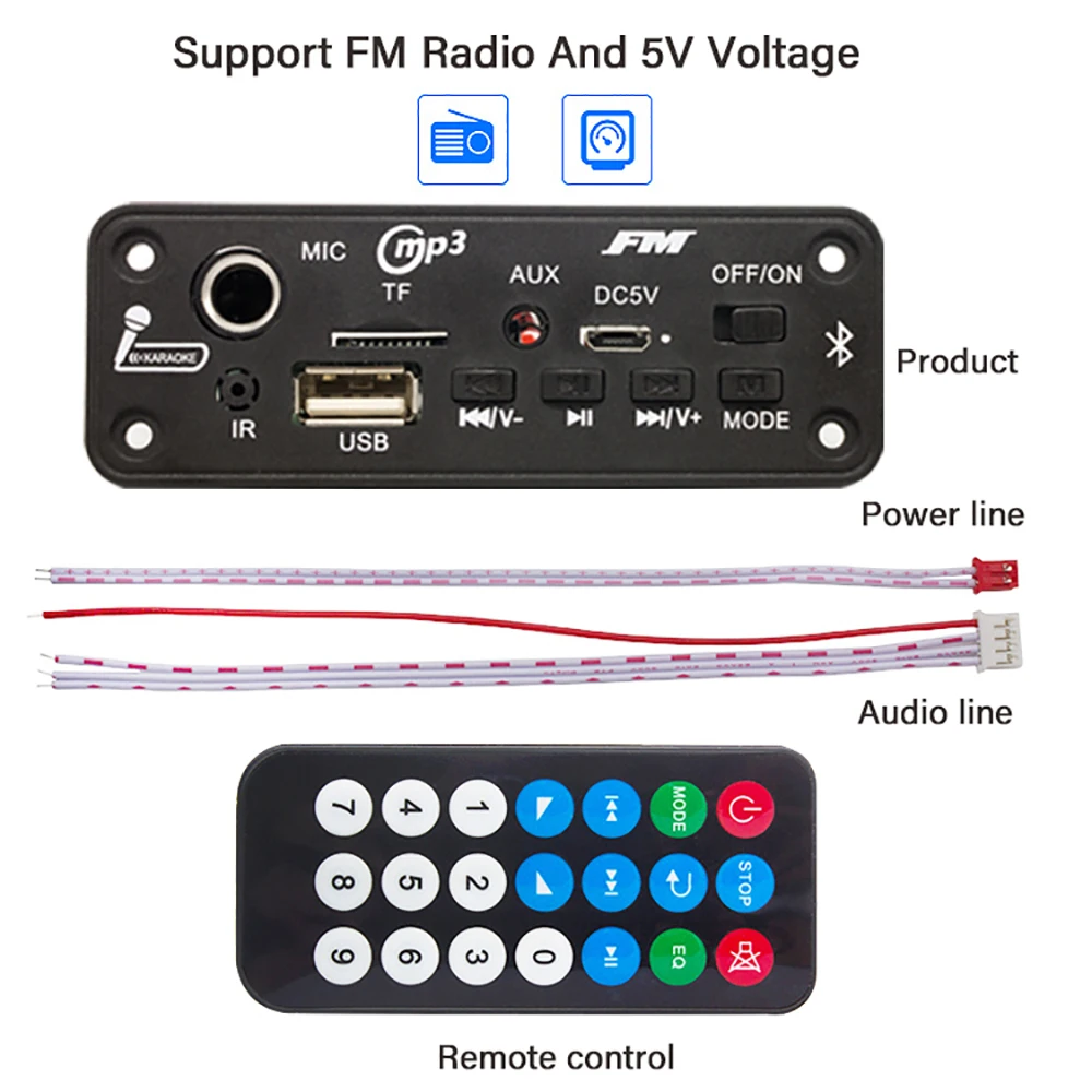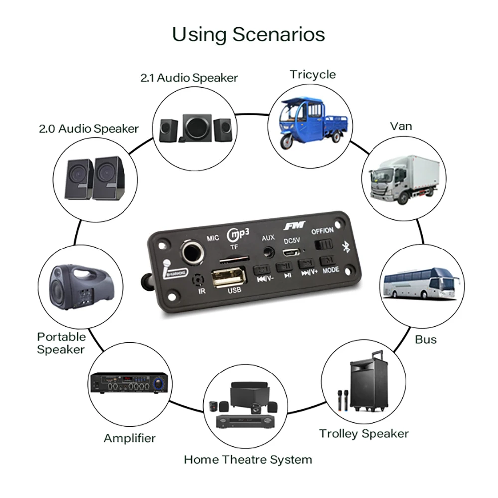 DC 5V inalámbrico Bluetooth DIY MP3 placa decodificadora 6W amplificador manos libres reproductor de música coche FM Radio módulo TF USB 3,5mm micrófono