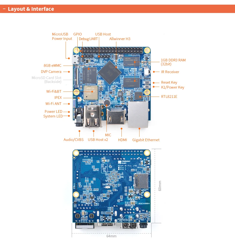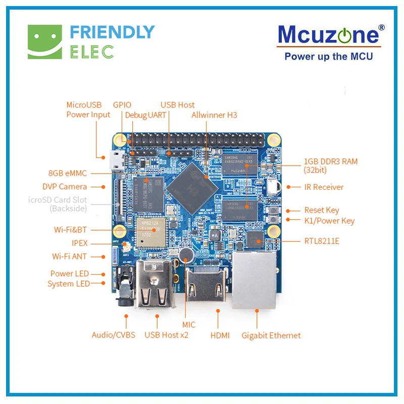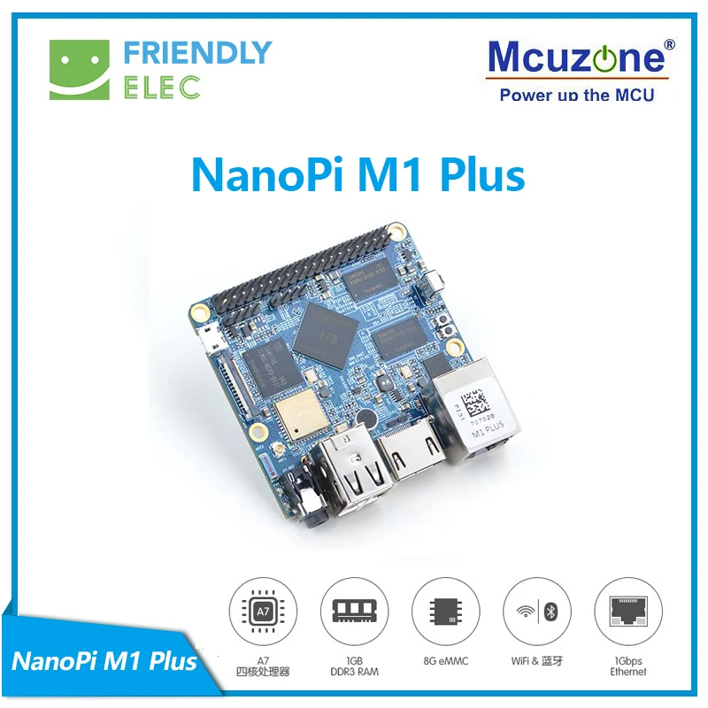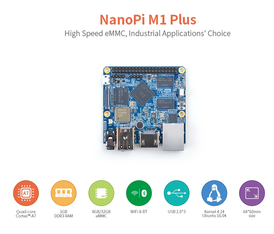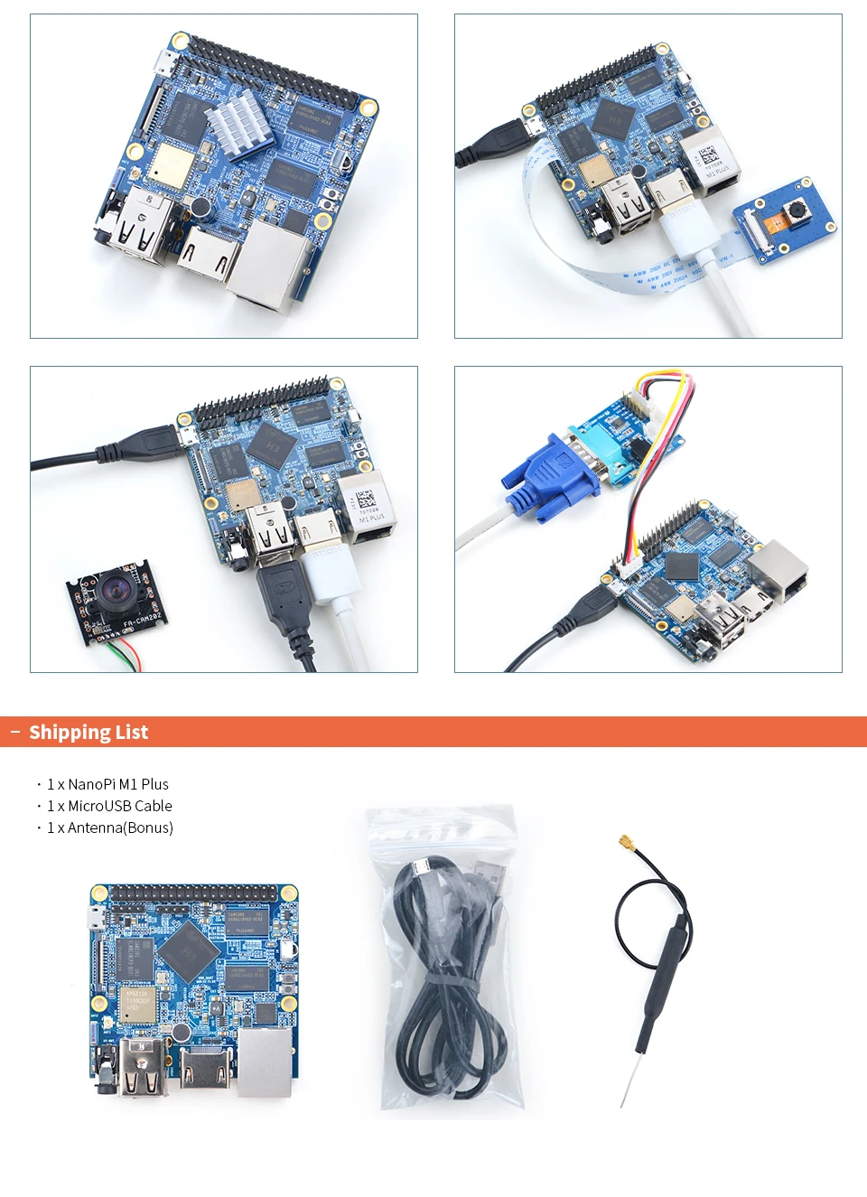 Comprar Placa de demostración NanoPi M1 Plus Allwinner H3 Quad-core Cortex-A7 (1,2 GHz, 1GB DDR3 RAM, 8G) Cable MicroUSB amigableELEC + antena