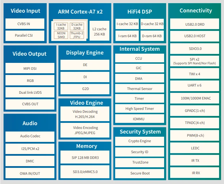 Allwinner rpt113 brazo de doble núcleo de la CPU DE LA cortex-a7