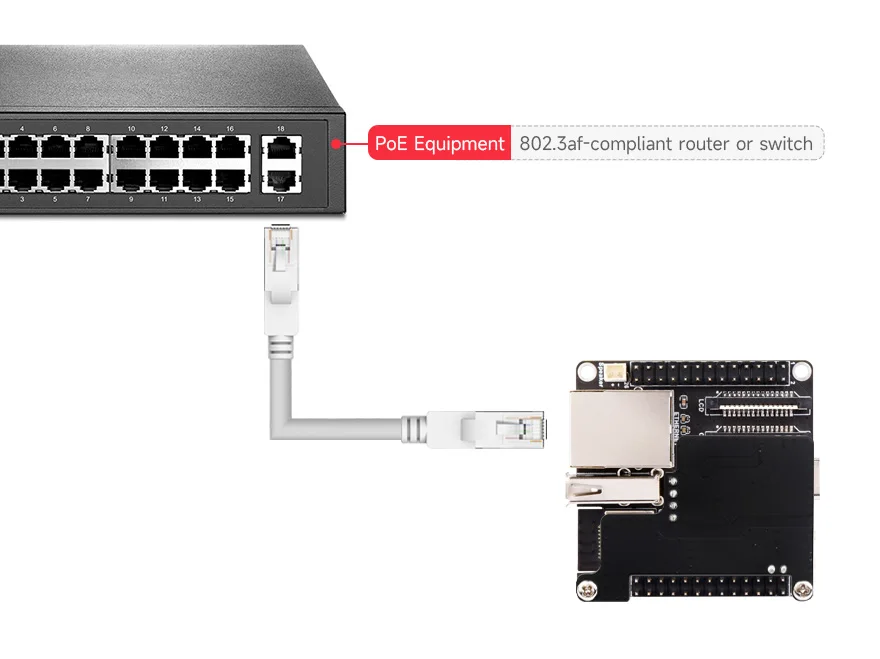Proporciona conexión de red y fuente de alimentación para la placa ESP32-P4-NANO en un solo cable Ethernet