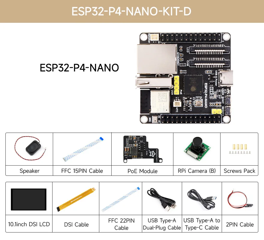 * La pantalla LCD DSI de 10,1 pulgadas solo está incluida en el ESP32-P4-NANO-KIT-D