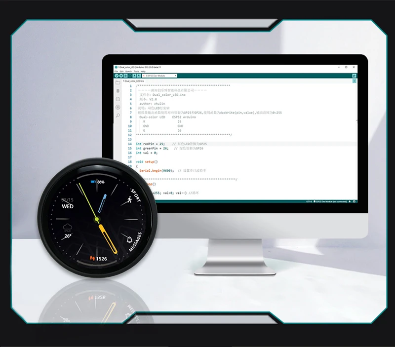 Placa DE DESARROLLO ESP32, pantalla estándar IPS TFT de 1,28 pulgadas y táctil capacitiva, admite descarga automática de una tecla, proporciona ejemplos de demostración LVGL y ArduinoEnlace de descarga: