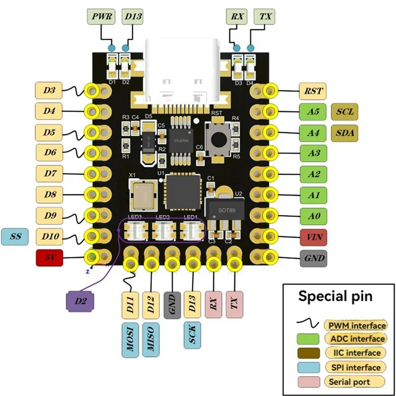 Comprar Placa de desarrollo para Arduino Nano Supermini tipo C, Chip Atmega328p, placa de desarrollo de puerto serie Ch340 para Arduino