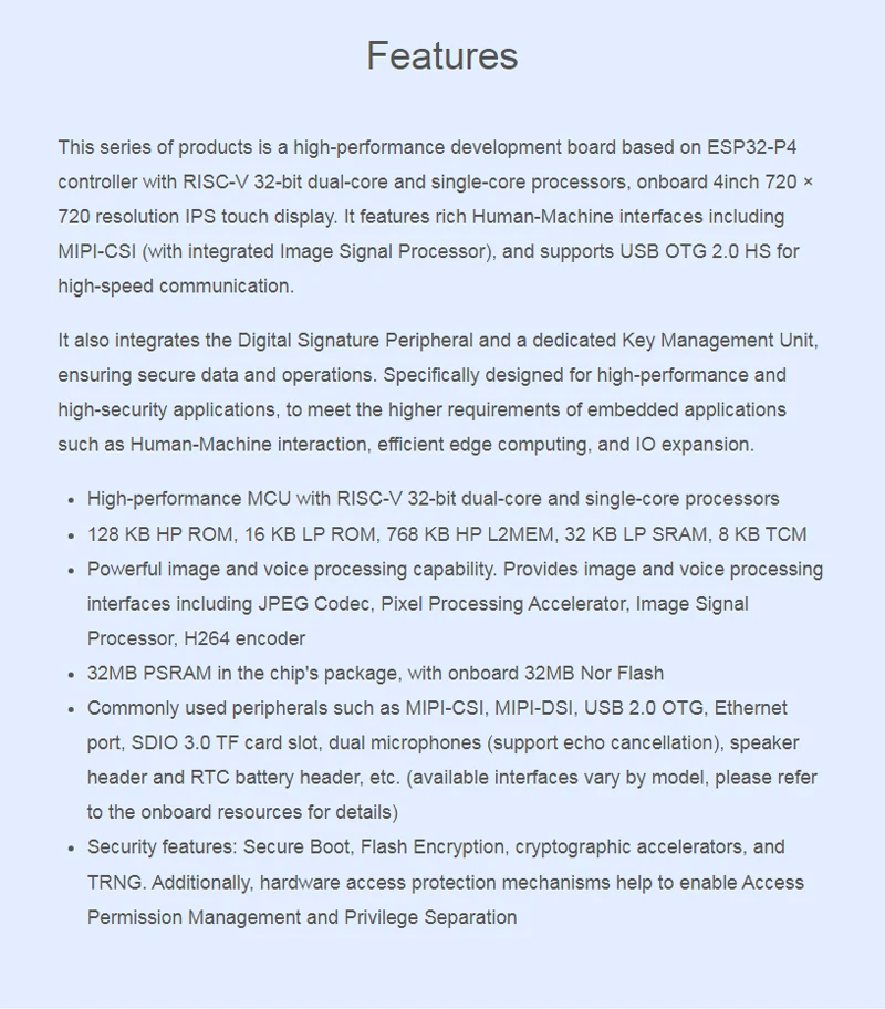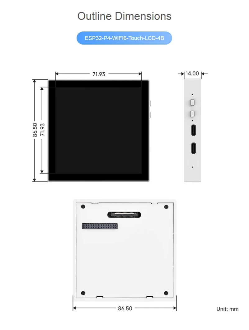 Placa de desarrollo de caja ESP32-P4 Smart 86, basada en el controlador ESP32-P4 con procesadores RISC-V de doble núcleo y de un solo núcleo de 32 bits, pantalla táctil integrada de 4 pulgadas, 720 × 720 píxeles, táctil de 5 puntos