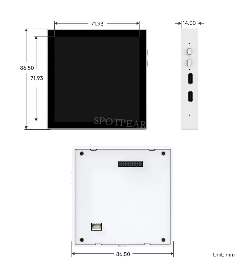 Este producto es una placa de desarrollo equipada con un módulo ESP32-S3 Wi-Fi de 2,4 GHz y BLE 5, integrado con 16 MB de Flash y 8 MB de PSRAM.Cuenta con una pantalla LCD integrada de 4 pulgadas con resolución de 480 × 480 con interfaz RGB, lo que permite un funcionamiento fluido de programas GUI como LVGL.Combinado con una variedad de interfaces periféricas, permite el rápido desarrollo de HMIs ESP32-S3, adecuado para aplicaciones como paneles de control centrales inteligentes, puertas de enlace domésticas, paneles interactivos inteligentes, control industrial y control de iluminación inteligente.