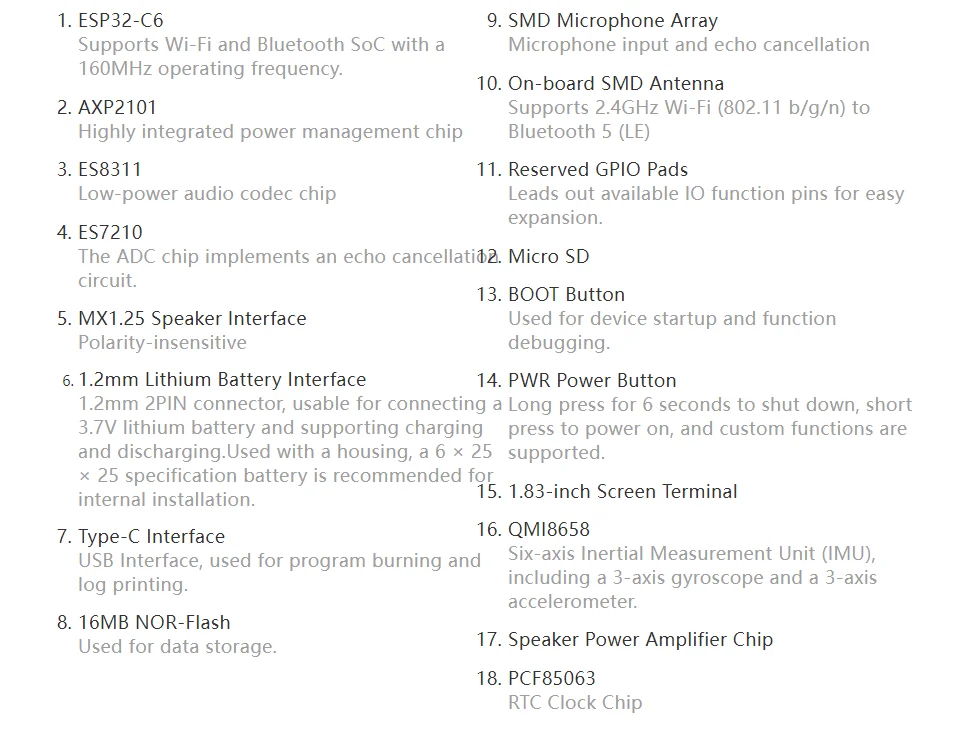 Chip de códec de audio ES8311 integrado, micrófono y altavoz, lo que permite un desarrollo perfecto de aplicaciones de IA.