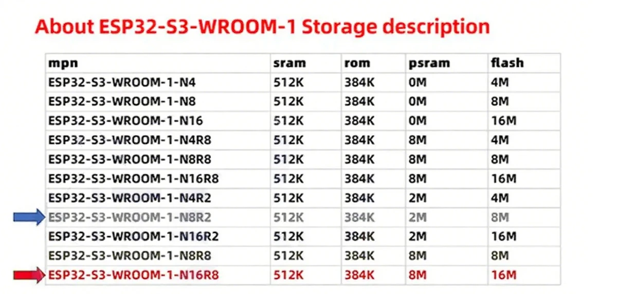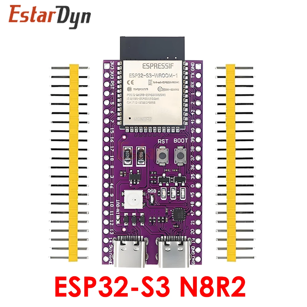 Módulos Espressif originales: ESP32-S3-WROOM-1-N8R2 (8M Flash/2SRAM) o ESP32-S3-WROOM-1-N16R8 (16M Flash/8SRAM)