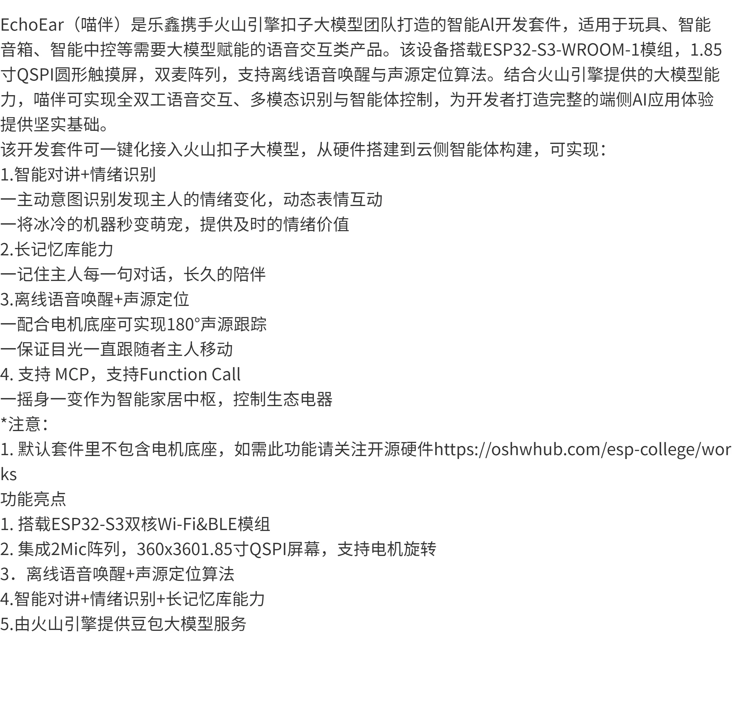 EchoEar ESP32 S3 Placa de desarrollo con pantalla LCD de 1,85 pulgadas lindo gato mascota juguete escritorio inteligente AI chat Robot N32R16