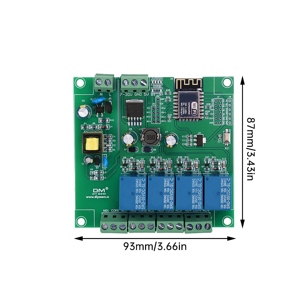 6, relé integrado de 4 vías de 5 V, señales de conmutación de salida, adecuadas para controlar el control de cargas dentro del voltaje de funcionamiento AC250V/Dc30V.