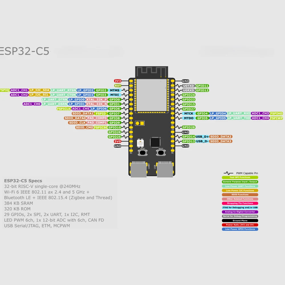 Placa de desarrollo ESP32-C5-DevKitC-1 Módulo WiFi de doble frecuencia 2.4G 5GHz con pin N4 4MB Flash WIFI 6 CH340 30PIN ESP32 C5