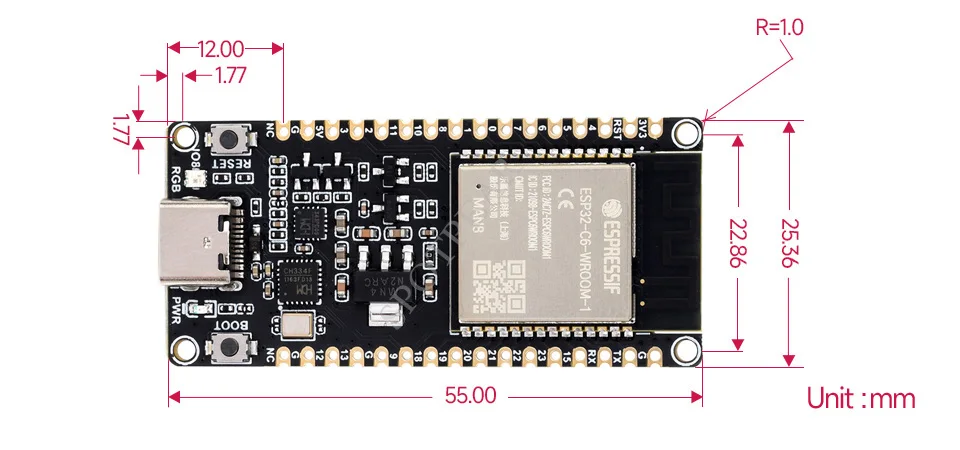 [] Compatible con el pinout de la placa de desarrollo ESP32-C6-DevKitC-1-N8