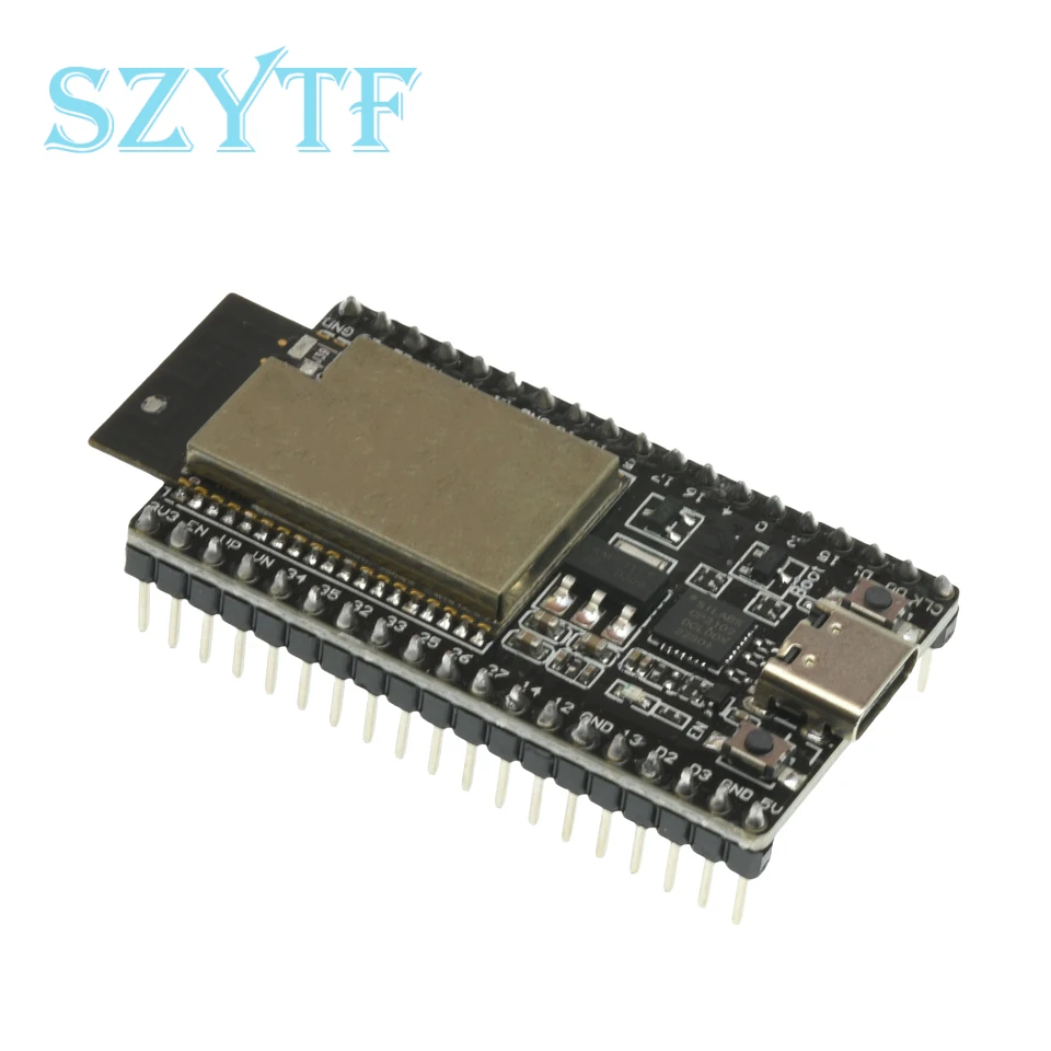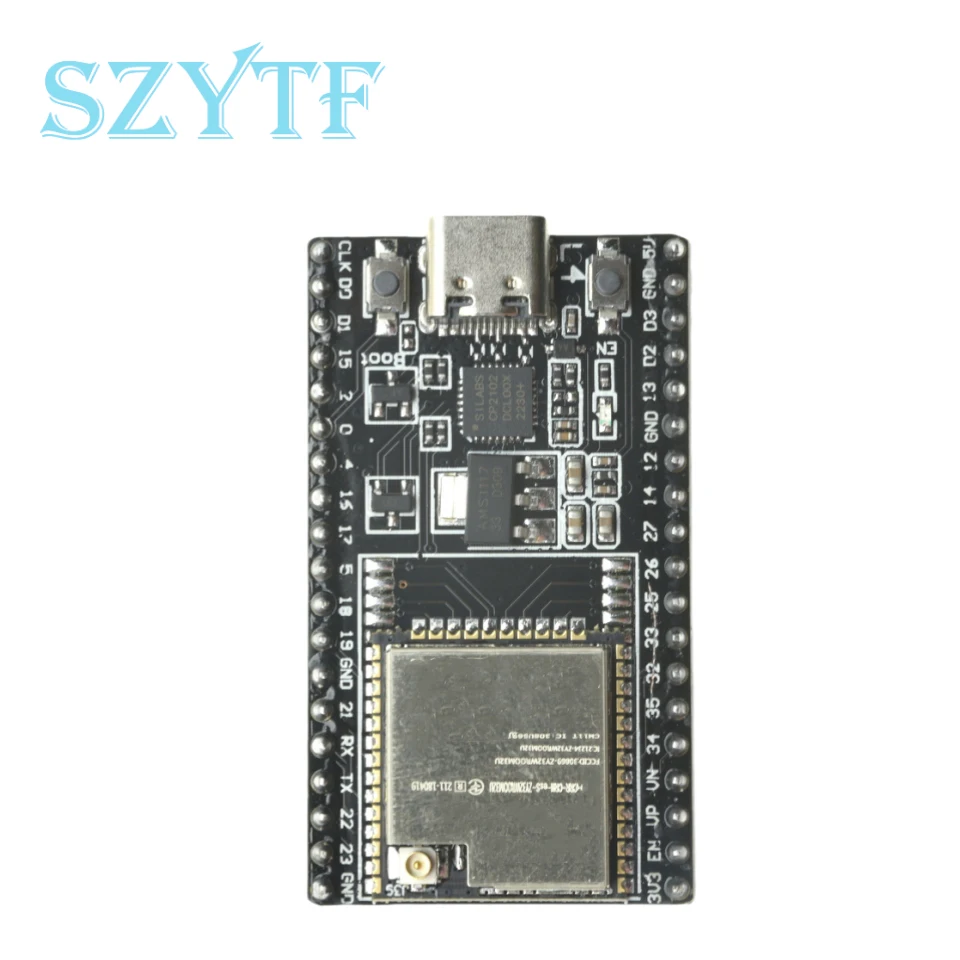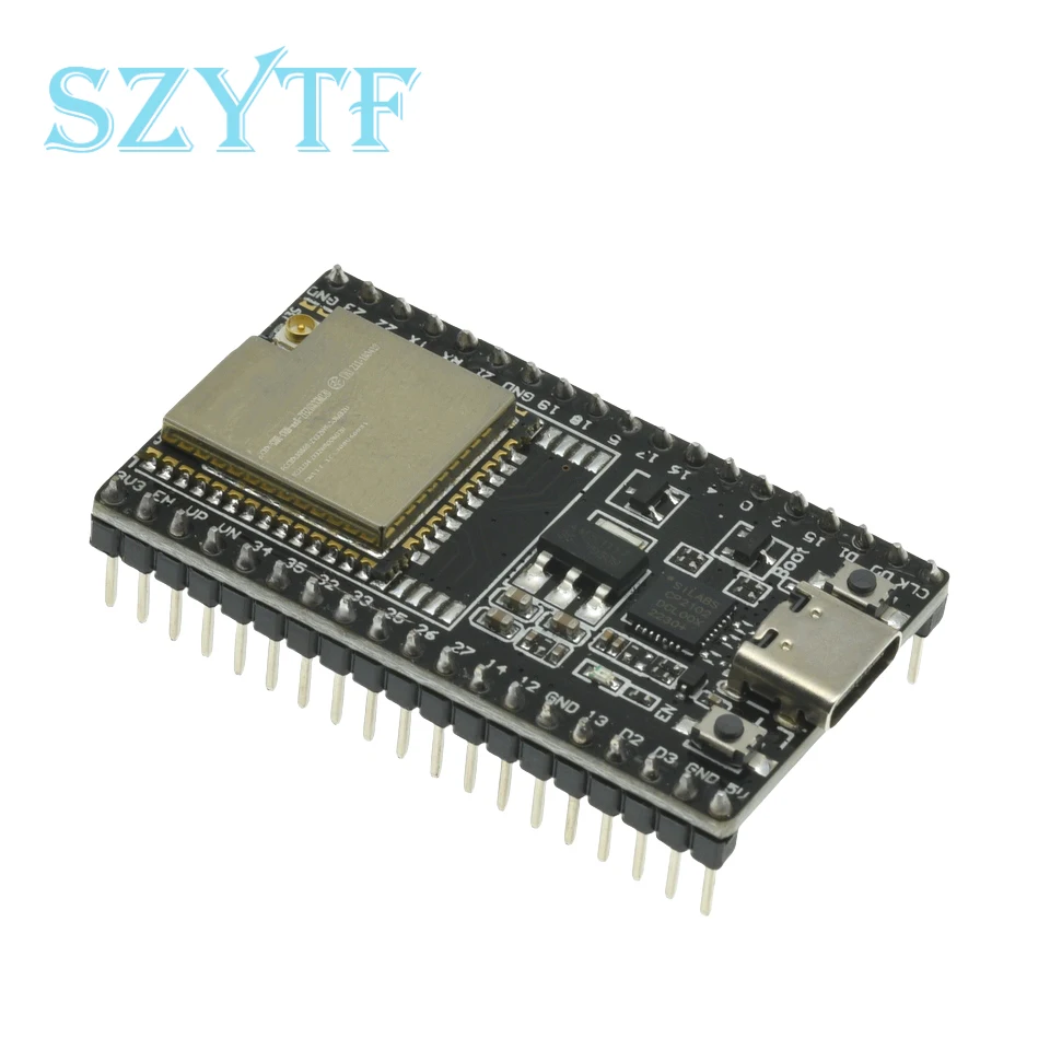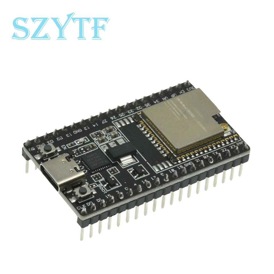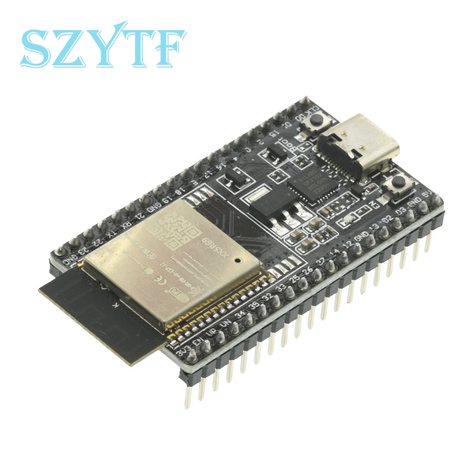 La placa de desarrollo ESP32 DevKitC adopta la interfaz TYPE-C convencional en la nueva versión, y la placa base puede equiparse con módulos ESP32: ESP-WROOM-32, ESP-WROOM-32D, ESP-WROOM-32U, ESP32.