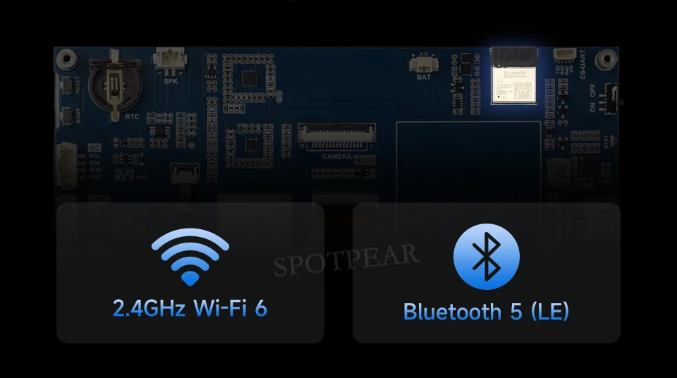 El módulo ESP32-C6-MINI integrado amplía las capacidades Wi-Fi 6 y Bluetooth 5 (LE) de 2,4 GHz para el ESP32-P4, utilizando el protocolo de interfaz SDIO para una conexión estable y una transmisión eficiente.