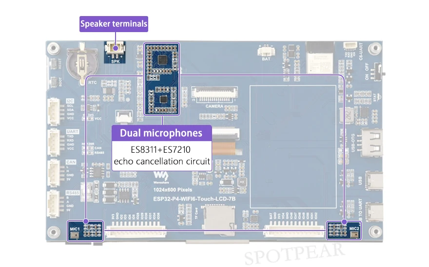 El chip de códec de audio ES8311 integrado y el circuito de cancelación de eco ES7210 satisfacen los escenarios de aplicación de audio diarios