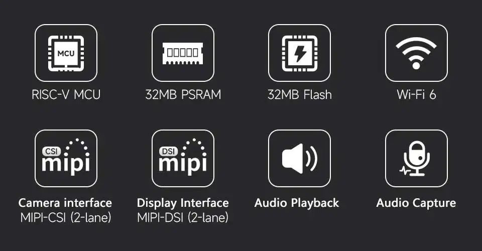Este producto es una placa de desarrollo multimedia basada en ESP32-P4 e integra ESP32-C6, compatible con conexiones inalámbricas Wi-Fi 6 y BLE 5.Ofrece una amplia gama de interfaces de interacción hombre-máquina, incluidas MIPI-CSI (procesador de señal de imagen integrado ISP), MIPI-DSI, SPI, I2S, I2C, LED PWM, MCPWM, RMT, ADC, UART y TWAI, etc..Además, es compatible con USB OTG 2.0 HS y está equipado con una interfaz de expansión GPIO de 40 pines integrada, que es compatible con algunas placas de expansión Raspberry PI Pico HAT para lograr una adaptación de aplicaciones más amplia.El ESP32-P4 adopta un procesador RISC-V de doble núcleo de 400 MHz, admite hasta 32 MB de PSRAM y está equipado con periféricos como USB 2.0, MIPI-CSI/DSI y H.Codificación 264, que cumple con los requisitos de desarrollo multimedia de bajo costo, alto rendimiento y bajo consumo de energía.Además, el ESP32-P4 integra un periférico de firma digital y una unidad de gestión de claves dedicada para garantizar la seguridad de los datos y las operaciones.ESP32-P4-WIFI6 está diseñado específicamente para aplicaciones de alto rendimiento y alta seguridad, cumpliendo con los requisitos de los sistemas integrados en interacción persona-computadora, computación de bordes y expansión de IO.