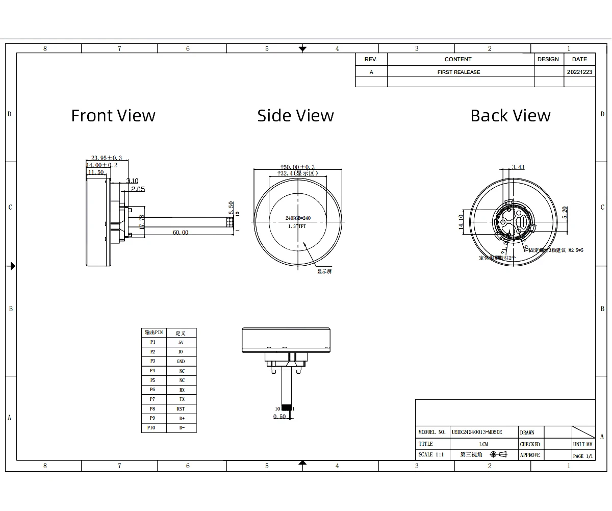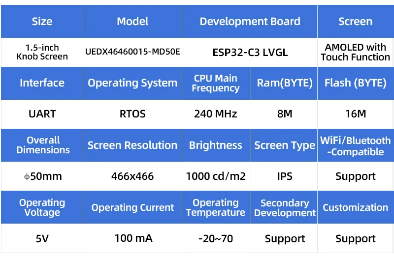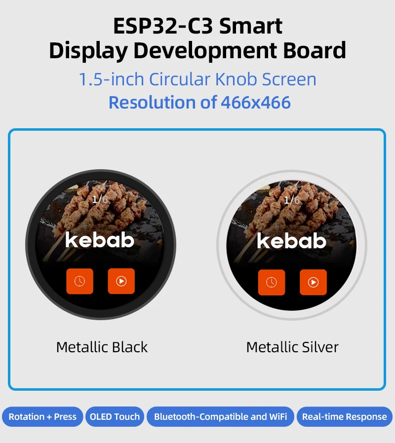 Placa de desarrollo ESP32 Pantalla de perilla redonda OLED táctil de 1,5 pulgadas 466 * 466 compatible con WiFi y Bluetooth para Arduino LVGL