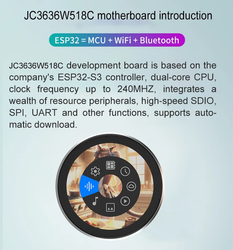 Placa de desarrollo ESP32-S3 de 1,8 pulgadas 8M PSRAM 16M FLASH pantalla secundaria 360*360 IPS táctil LCD para Arduino WiFi Bluetooth AIDA64