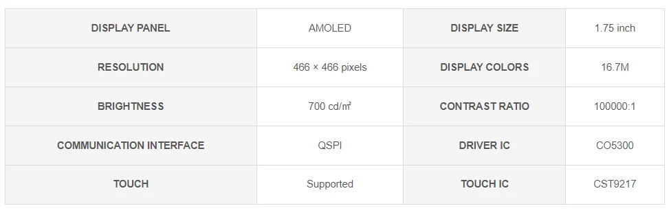 Pantalla táctil capacitiva AMOLED integrada de 1,75 pulgadas para una visualización de imágenes en color claro, resolución de 466 × 466, color de 16,7 M