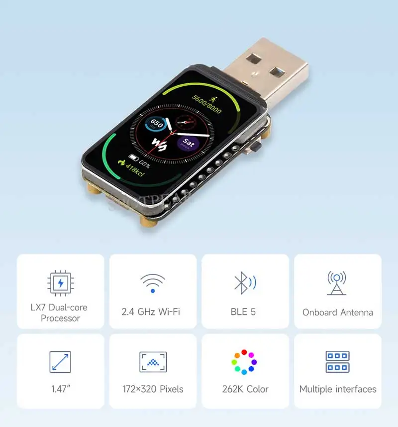Pantalla LCD integrada de 1,47 pulgadas, resolución 172 × 320, color 262K