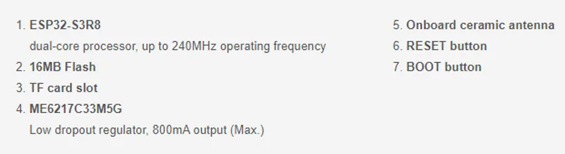 Equipado con procesador dual-core Xtensa de 32 bits LX7 de alto rendimiento, frecuencia principal de hasta 240 MHz