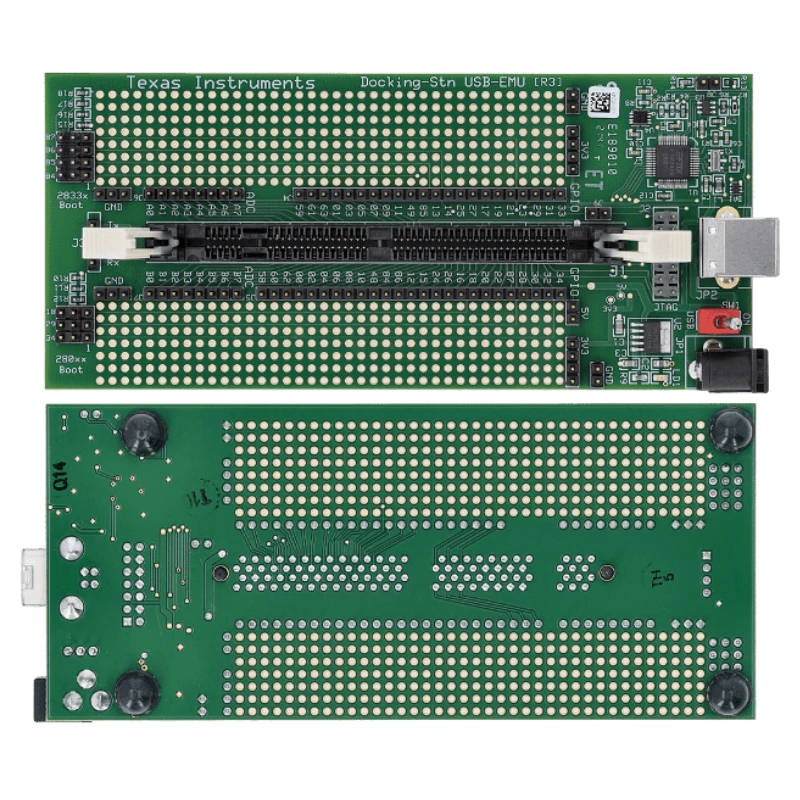 La placa de evaluación y desarrollo integrada TMDSDOCK28069 se basa en el microcontrolador Piccolo TMS320F28069, que utiliza un núcleo C28x de 32 bits y se puede clonar a 90 MHz, lo que proporciona 180 MIPS de rendimiento de procesamiento para manejar de manera eficiente los requisitos informáticos de algoritmos de control complejos.En términos de almacenamiento, la memoria flash integrada de 256 KB y 100 KB de RAM brindan suficiente espacio para el almacenamiento y el procesamiento de datos de programas, y también incluye 2 KB de ROM programable de una sola vez (OTP), que se puede utilizar para almacenar información de configuración clave.En términos de compatibilidad de desarrollo, el entorno de desarrollo integrado Code Composer Studio (CCS) es totalmente compatible.Con la ayuda del emulador J-TAG XDS100V1 integrado, el código se puede programar y depurar rápidamente en línea, y el proceso de desarrollo se puede completar sin hardware adicional.La configuración de la interfaz es rica, no solo proporciona una interfaz de extracción de señal completa y un área de placa de pruebas para una fácil verificación del prototipo, sino que también integra UART, SPI, CAN, I2C y otras interfaces de comunicación para cumplir con los diferentes requisitos de conexión periférica.