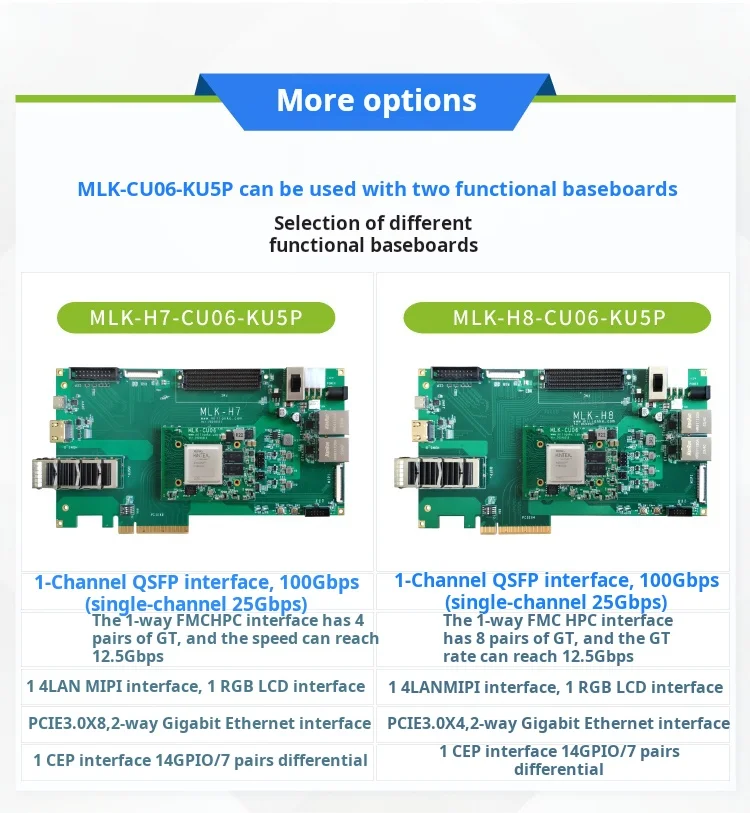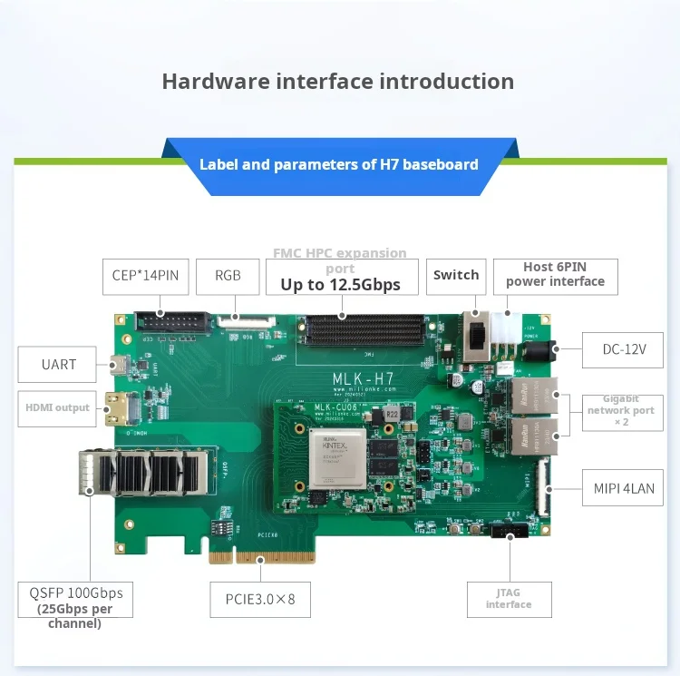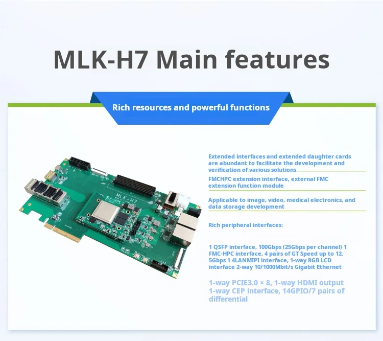 Equipado con memoria DDR4 de alto ancho de banda y conectores FMC-HPC, que proporciona amplias capacidades de almacenamiento de datos y opciones flexibles de expansión del sistema.
