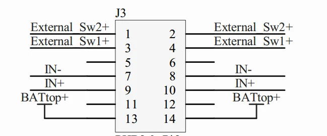 如上图24串18650电池串联引出26根采集线其中第12串电芯正极引出两根采集线。 连接到BMS板的J6端子上,定义顺序如5.5所示。把BMS的J5中(13 14)的BATtop+连接到第24串正极端(总压检测)。24串电池正负分别引线经过双刀开关S1连接DCDC的输入端,DCDC的输出端正极负极经过开关分别连接到BMS的J1中(1,2,3,4)DC12V+,DM12V+和(5,6)GND上。连接好后闭合开关S1后BMS电池板即得电。 BMS板J1的(33,34)CAN2_H, CAN2_L连接到CAN卡上, CAN卡的USB连接到PC电脑上,安装好CAN卡的驱动后,打开BmsPCTool软件点击连接便可看到BMS数据显示在PC软件上。连接好后如下顺序上电。