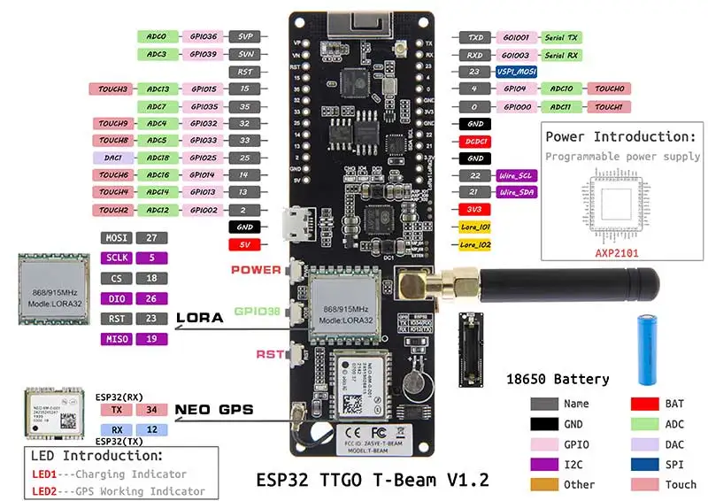 [] TTGO Meshtastic T-Beam V1.2 ESP32 LoRa Development Board 433MHz 868MHz 915MHz 923MHz WiFi BLE GPS OLED Display AXP2101
