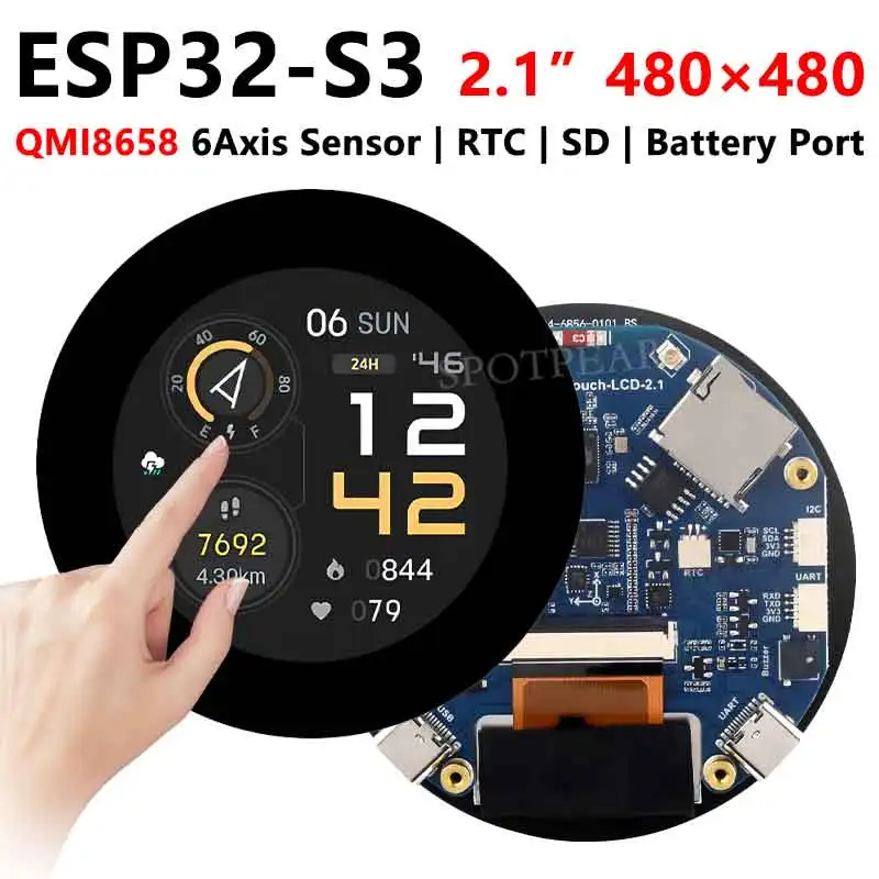 Comprar Placa de desarrollo LCD ESP32 S3, pantalla táctil cautiva LVGL HMI con Sensor QMI8658C de 6 ejes, 2,1 pulgadas, 480x480