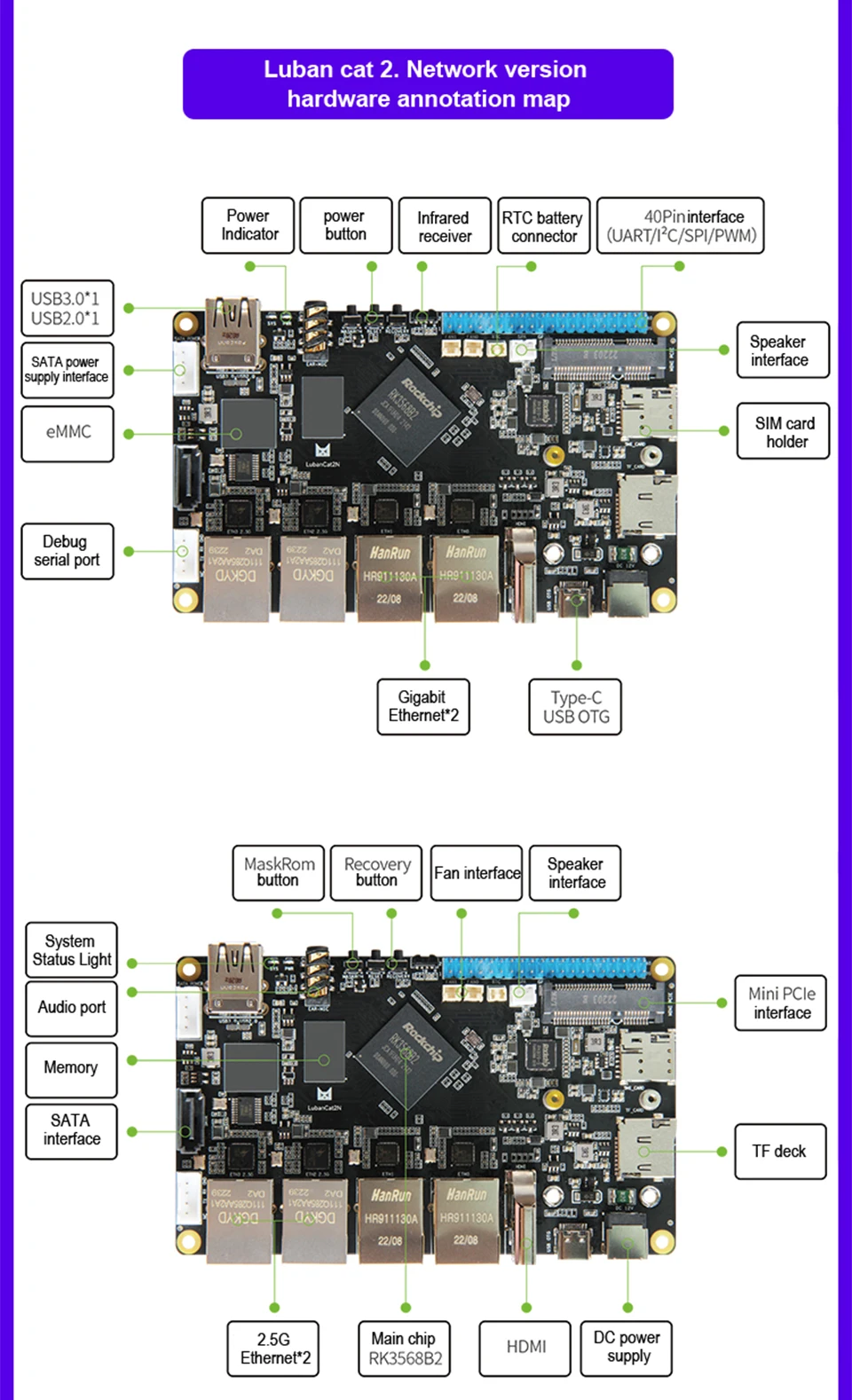 LubanCat-2N es un enrutador suave de bajo consumo y alto rendimiento diseñado con tecnología Wildfire basado en RockChip RK3568.